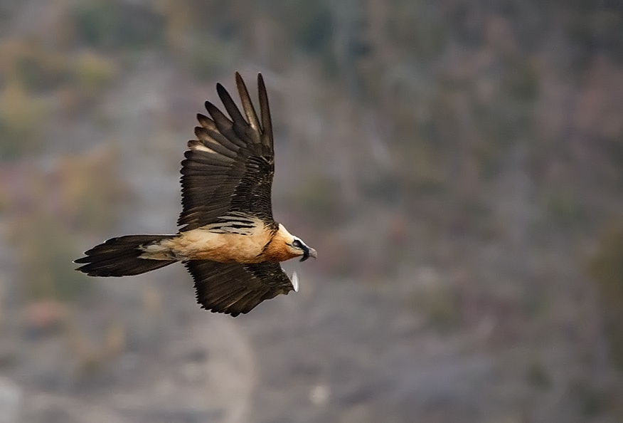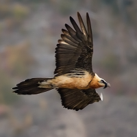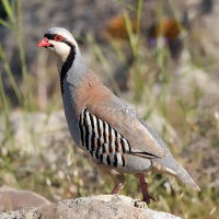 The Asterousia Mountains are not very high (highest peak is Mount Kofinas with 1,231 m.), but access is quite tough because the terrain is very rugged, with many gorges and canyons. Asterousia has warm temperatures, little rainfall and very low vegetation. However, this rocky and dusty landscape, baked by the fierce summer sun, manages to provide refuge to large birds of prey such as Griffon Vulture, Bearded Vulture, Golden Eagle, Peregrine Falcon, Lanner Falcon and Bonelli's Eagle and another 200 bird species, 112 of which are migratory and found here in spring, summer and autumn. Some of the other interesting birds that can be seen in these mountains are Chukar, Alpine Swift, Common Raven, Red-billed Chough, Rüppell's Warbler, Subalpine Warbler, Blue Rock Thrush, Black-eared Wheatear, Northern Wheatear and Ortolan Bunting.