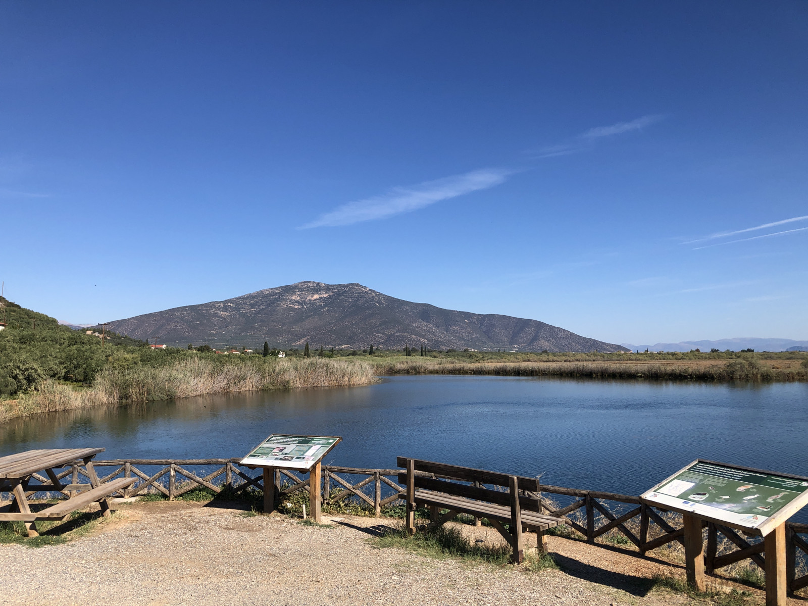Moustas Wetlands is a wetland system consisting of two lakes, Lake Moustos and a smaller, Lake Cherronissos. It is located in the center of the bay of Astros, behind the sandy beach. The lake Moustos has a maximum depth 5 meters and communicates with the sea by two artificial channels. The Cherronissos Lake is formed by the waters of the spring that flows from the edge of the hill to the east and goes directly into the sea. The area is a refuge for a significant population of migratory birds that overwinter. In its dense reeds nest Water Rail and Purple Heron. Among the other birds you can encounter are Black-winged Stilt, Northern Shoveler, Common Teal, Little Grebe, Green Sandpiper, Western Marsh Harrier, Penduline Tit, Sardinian Warbler and Cetti's Warbler.
