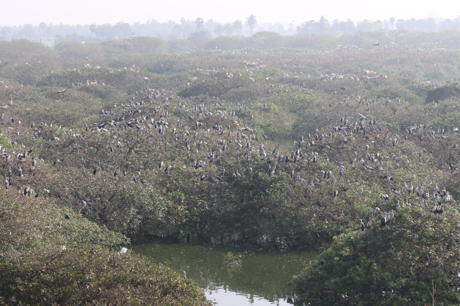 Vedanthangal Bird Sanctuary is a 30-hectare protected Ramsar wetland that hosts huge numbers of birds particularly during the migratory season. Species that can be seen in great numbers include Painted Stork, Asian Openbill, Oriental Darter, Black-headed Ibis, Spot-billed Pelican, and other waterfowl. Various other bird species can be seen in the surrounding trees and shrubs. The best time to visit this sanctuary is from November to March.