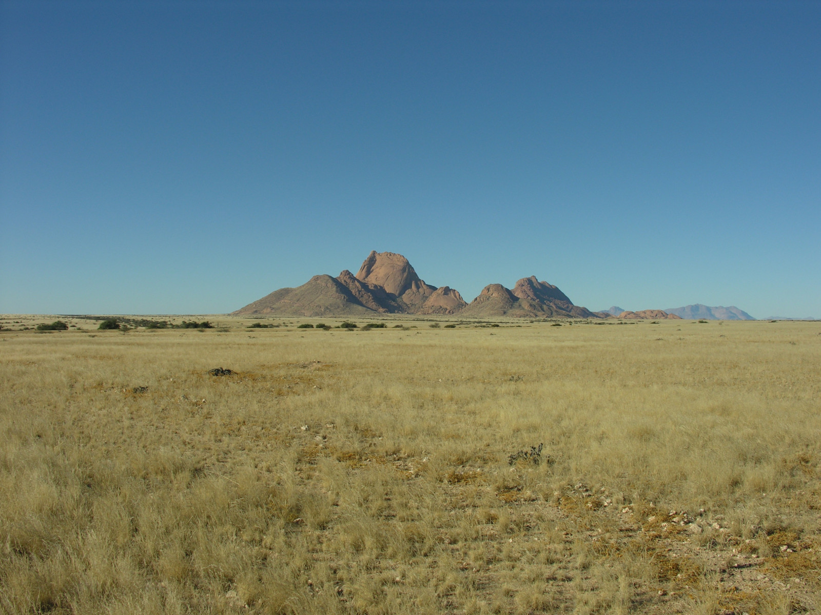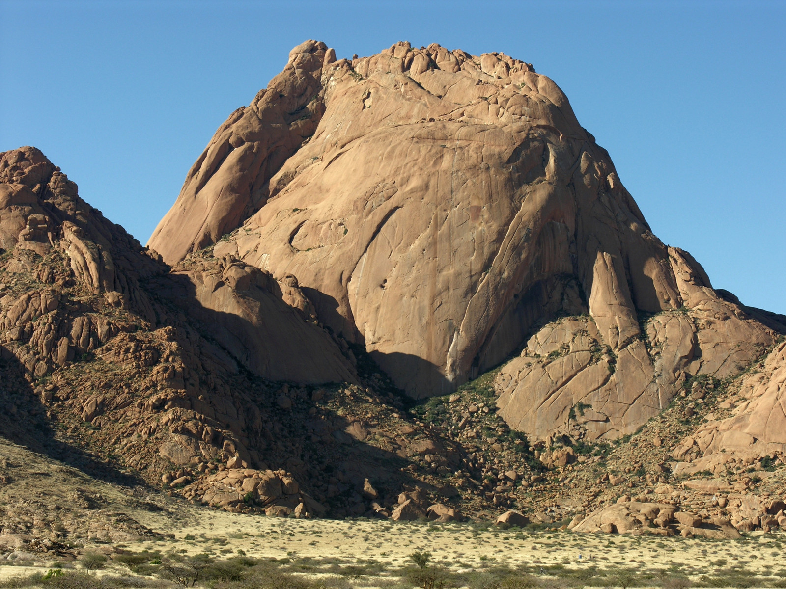 The Spitzkoppe is a group of bald granite peaks or located between Usakos and Swakopmund in the Namib desert of Namibia. The granite is more than 120 million years old and the highest outcrop rises about 1,728 metres (5,669 ft) above sea level. The peaks stand out dramatically from the flat surrounding plains. Ease of walking along the paths, presence of many species of birds. See the birdlist below.