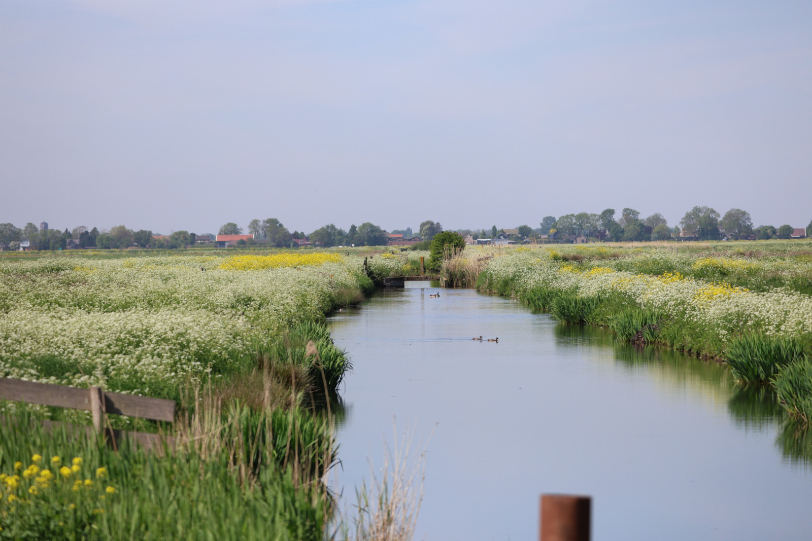 Large area with small gravel roads. In the spring, water is pumped onto the meadows to make it an attractive breeding ground for meadow birds.