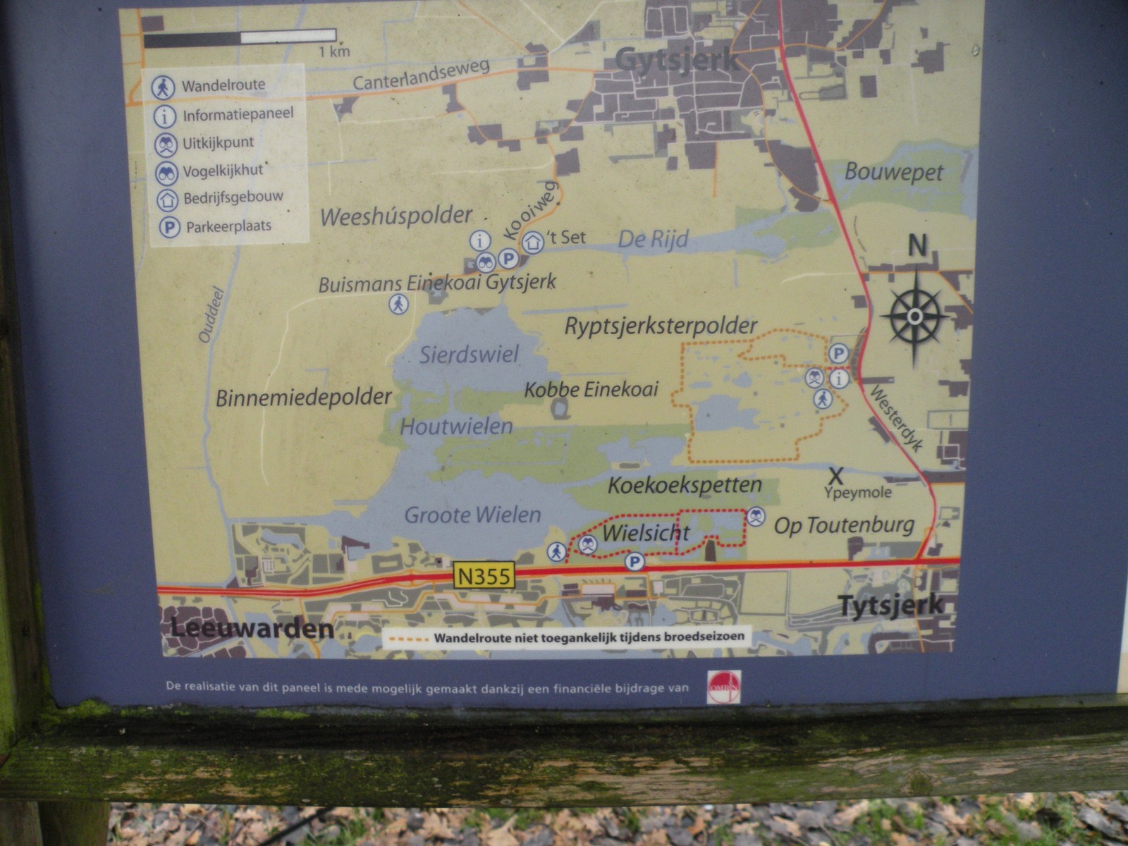 On the road from Tytsjerk to Gytsjerk, after approx. 1 km on the west side is a picnic area with information panel and benches.
