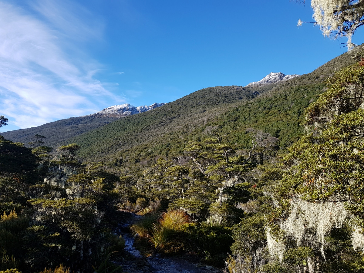 Turn off State Highway 60 at Upper Takaka and allow at least an hour to drive the narrow gravel road up to parking at the Trilobite Hut, near the Cobb Valley Campsite, at the top of the reservoir. The road may not always be suitable for low-clearance vehicles. From the campsite, the Cobb Valley Hut to Fenella Hut is about 13 km one way and takes 5-6 hours on foot. It's possible to do shorter walks or stay in huts closer to the start. Be aware this is a mountain environment, so come prepared for sudden weather changes and seasonal conditions.