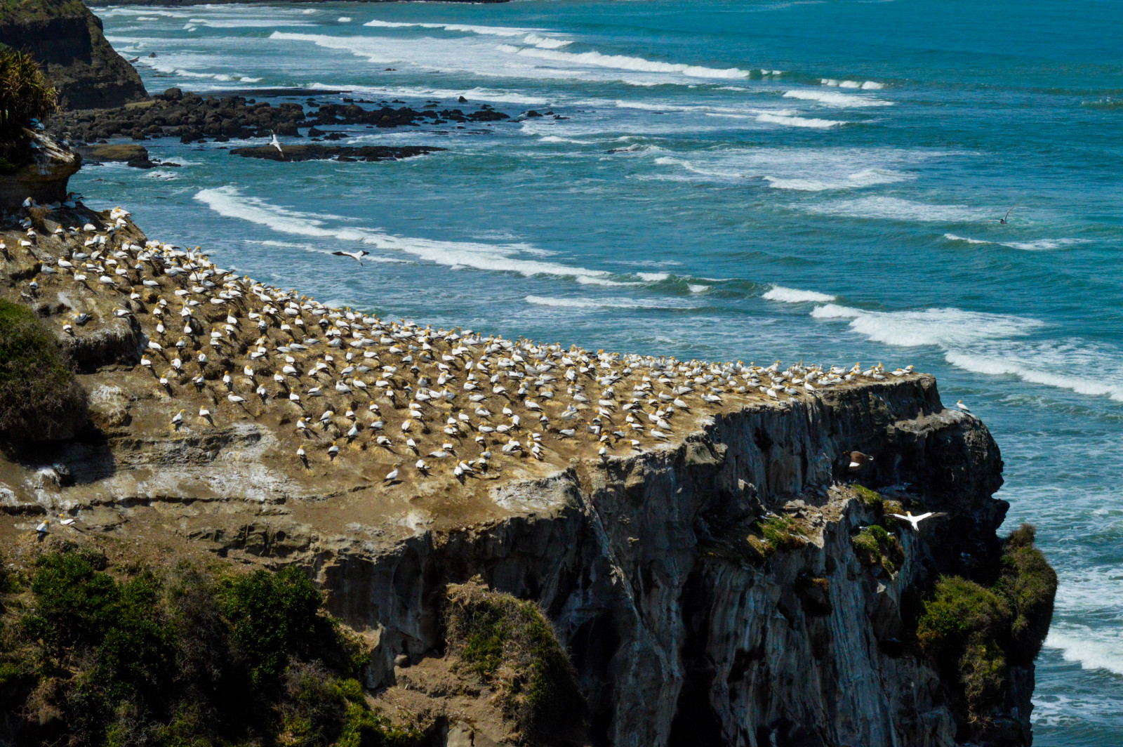 The Southern end of Muriwai beach is home to one of the few New Zealand mainland Australasian Gannet breeding colonies.