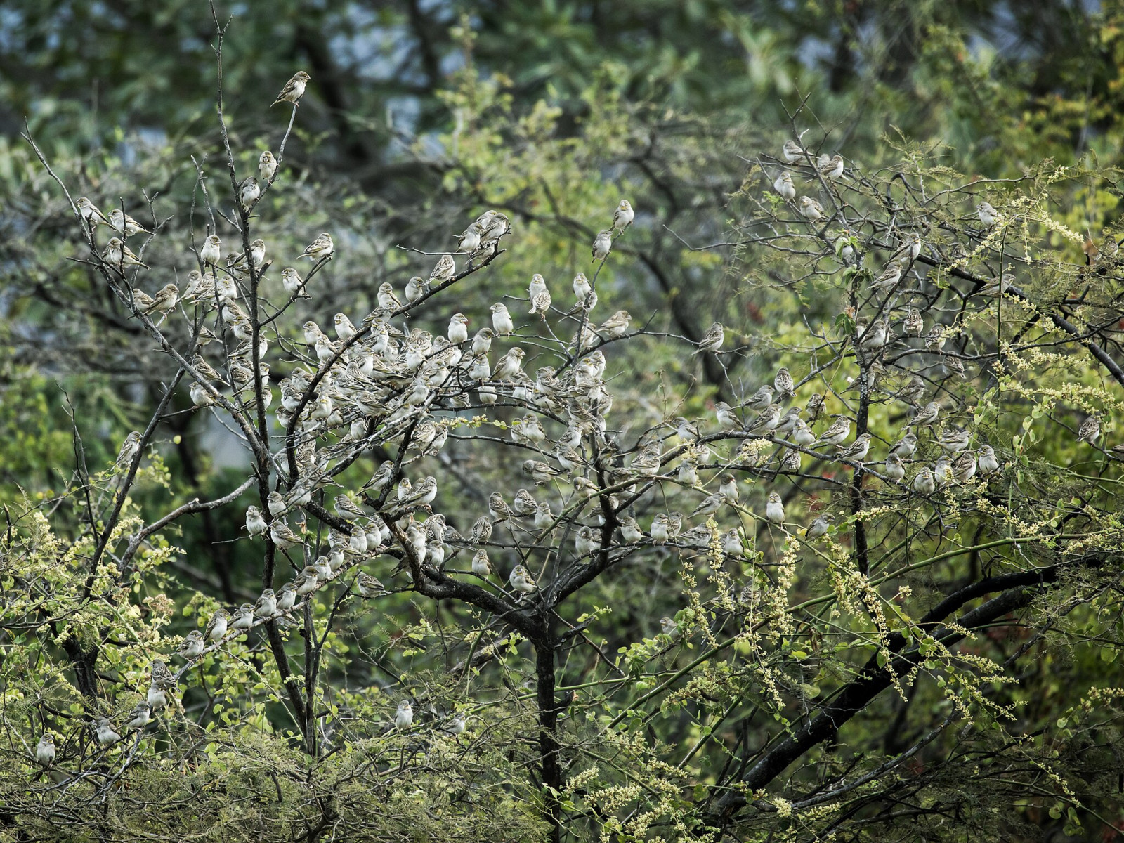 - Photo flock of Sulphur-throated Finches by Nick Athanas, CC BY-SA 2.0, via Wikimedia Commons