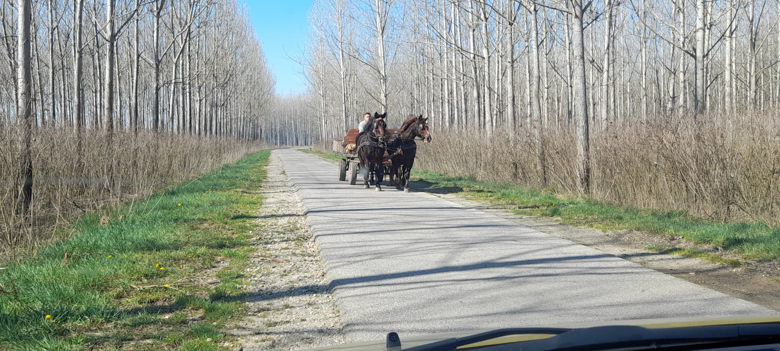 Park wherever you like, but at the side – be sure not to block heavy lorries full of poplar trunks! Explore by walking, or further driving.