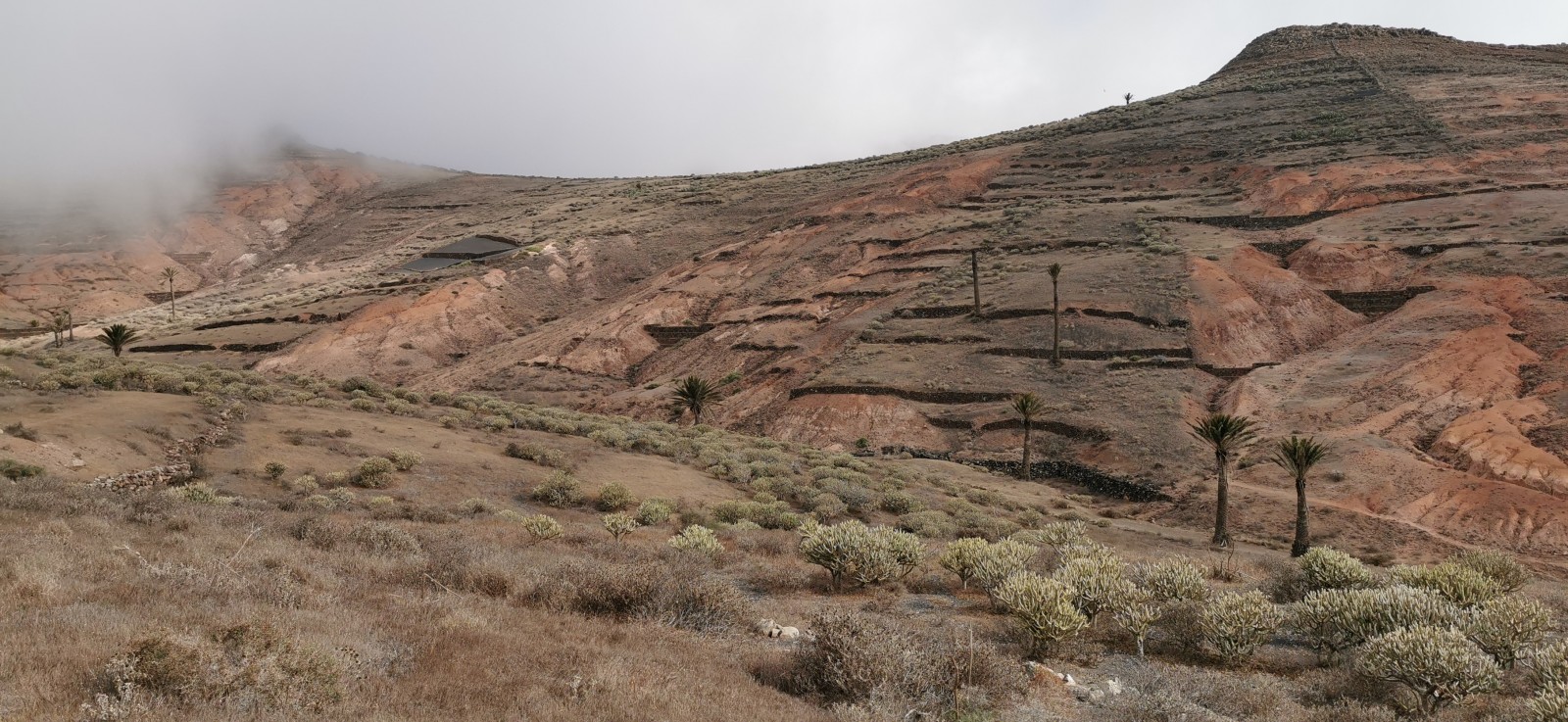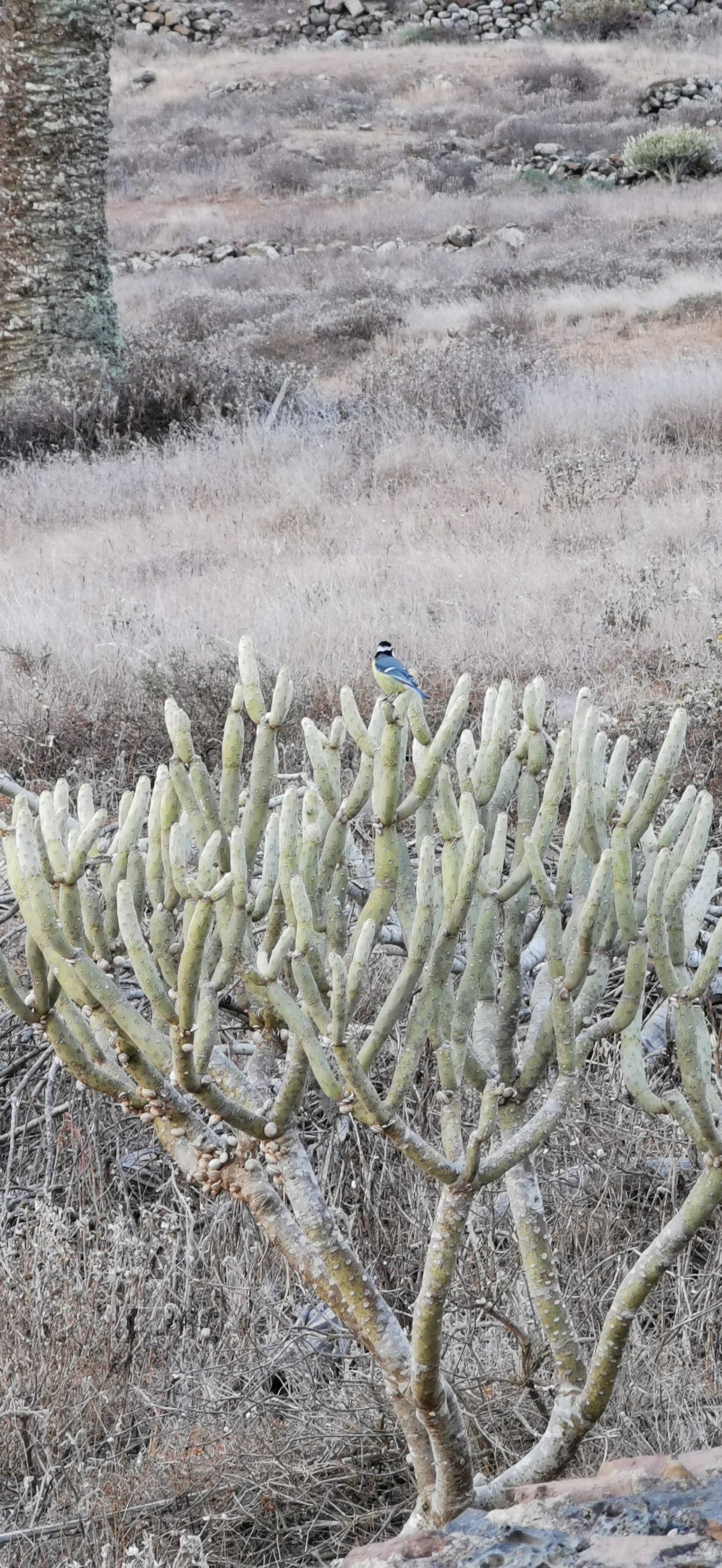Haria is a good place to search for birds of agricultural areas. It has quite some African Blue Tit. Look for Eurasian Collared Dove, Laughing Dove and African Collared Dove in the palm trees (or rather: listen). Eurasian Kestrel and Common Raven are most common raptors, but also check for others like Egyptian Vulture, Peregrine Falcon , Eleonora's Falcon. Also Berthelot's Pipit and Great Grey Shrike are common, while Spectacled Warbler, Linnet and Island Canary are less common but still easy to find. Yellow-legged Gull is seen frequently at the cliffs.