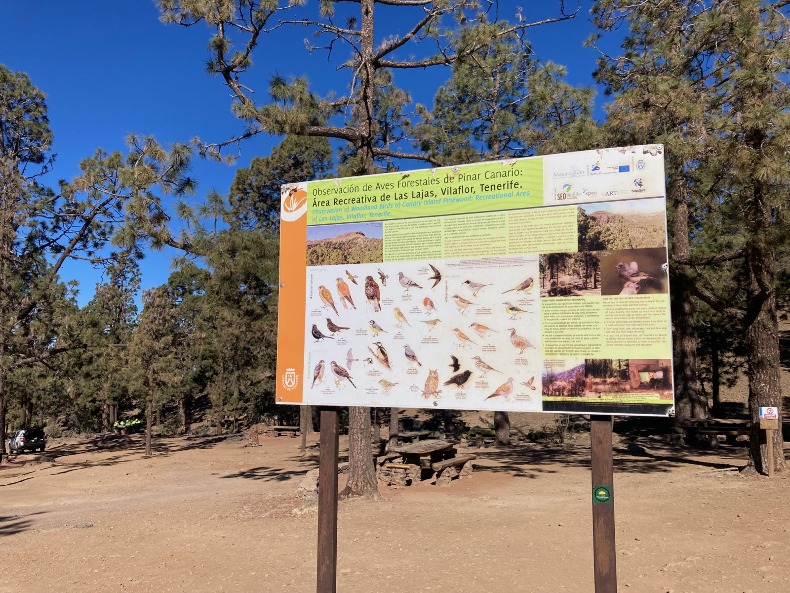 Las Lajas is a recreational area, sparsly covered with the canary pine. Low hills ascends to the north-eastern direction. The place is a hotspot for Blue Chaffinch, which is most easily seen when it comes to a small artificial pond, carved out from a pine stump. The birds are not tame but neither very shy, so they will visit the pond if you keep some distance (10-15 meters, 30-50 feet). Sometimes they come closer. You can also see (or hear) Rock Dove, Great Spotted Woodpecker , Canary Islands Chiffchaff, Tenerife Goldcrest and Common Raven.