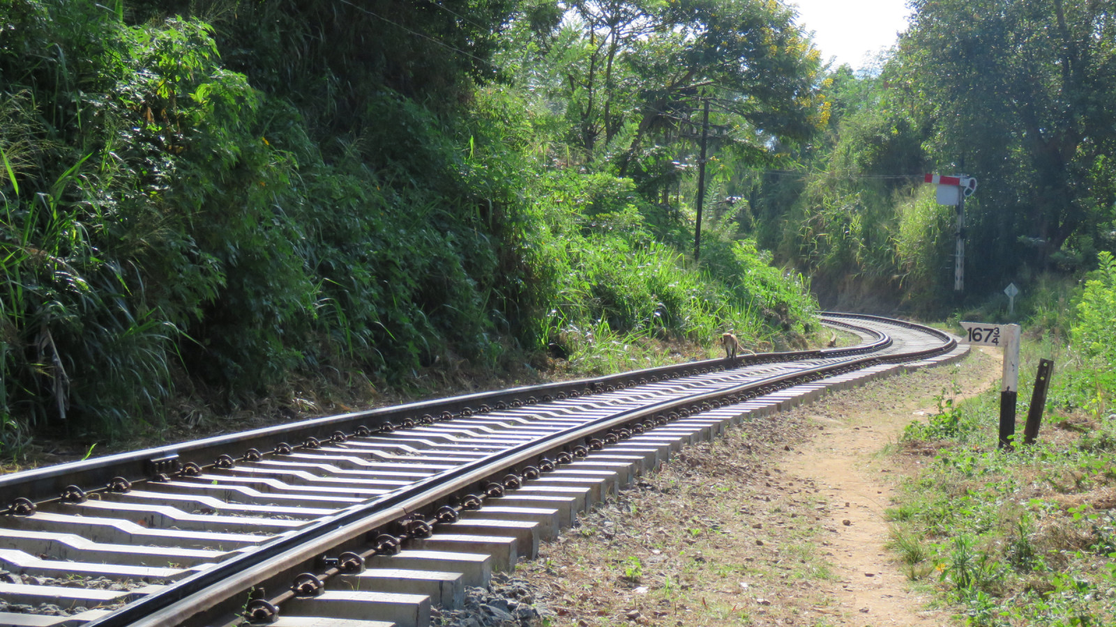Around Ella it is common to use the railway track as a footpath. You see many Sri Lankans walking on or along the railway track. There are few trains passing and they drive slowly. You can hear the trains coming from a distance and they often sound their horns, so you can't actually miss the trains. Nevertheless, you should be alert for approaching trains. There is often plenty of space next to the track, so stand to the side as the train passes and then continue your walk.