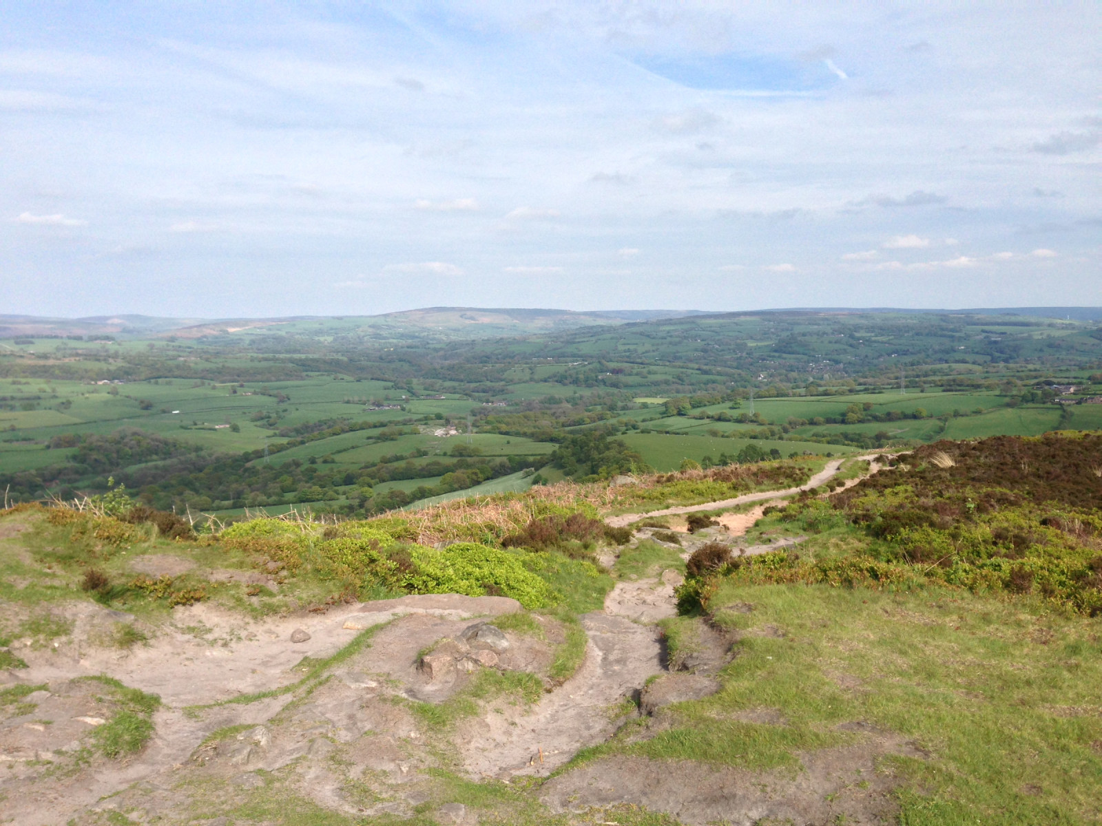 The top of the hill is a plateau covered by heather. There is trig point and some rocky outcroppings that can be sat on for a picnic. Meadow Pipit, European Stonechat and Northern Wheatear can be found during the summer. During winter Eurasian Siskin are likely and Redwing during migration.
