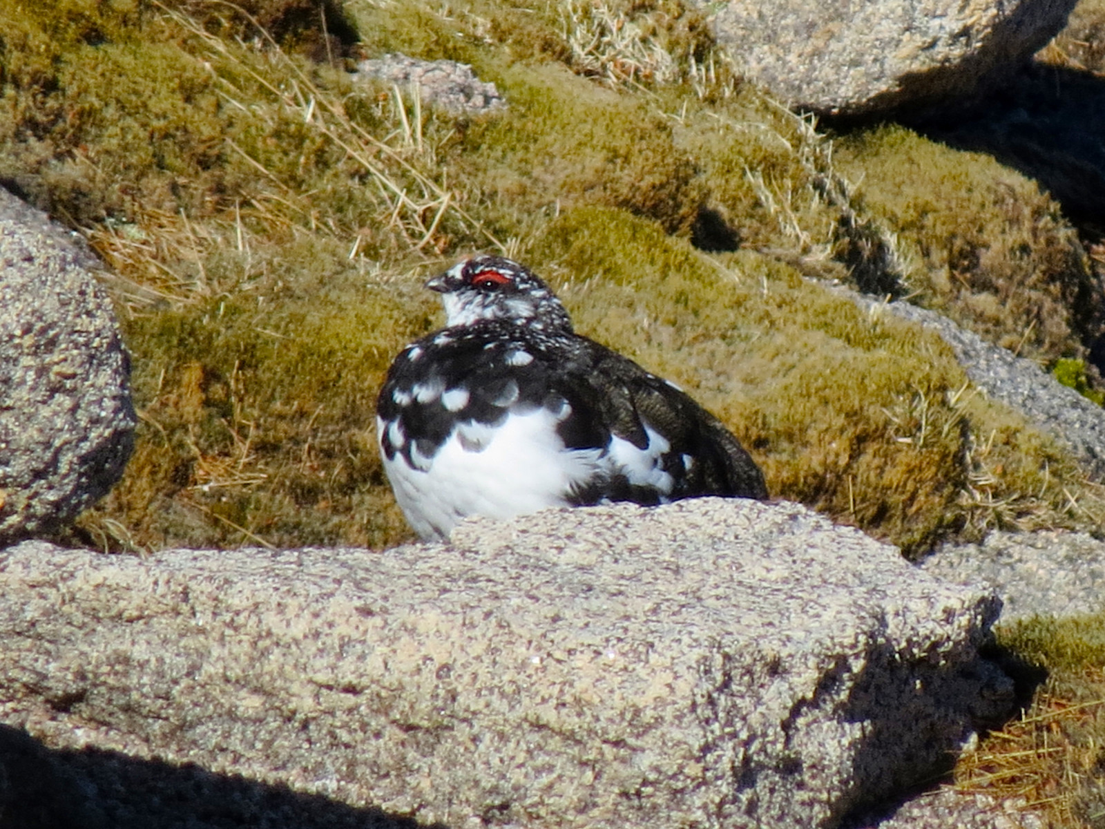 Cairn Gorm is the most accessible high mountain location in Britain. The summit can be reached by ski lift or on foot from the ski car park. The higher ground, above about 700-800 m altitude, has Rock Ptarmigan, Snow Bunting, Dotterel (summer only) and Britain's only herd of Reindeer. On the upper slopes look out for Golden Eagle, Ring Ouzel, Red Grouse and Mountain Hares (which often lie up under the ski lift stanchions). The wooded lower slopes are home to Common Crossbill, Common Raven and Crested Tit, while Osprey often fish at Loch Morlich.
