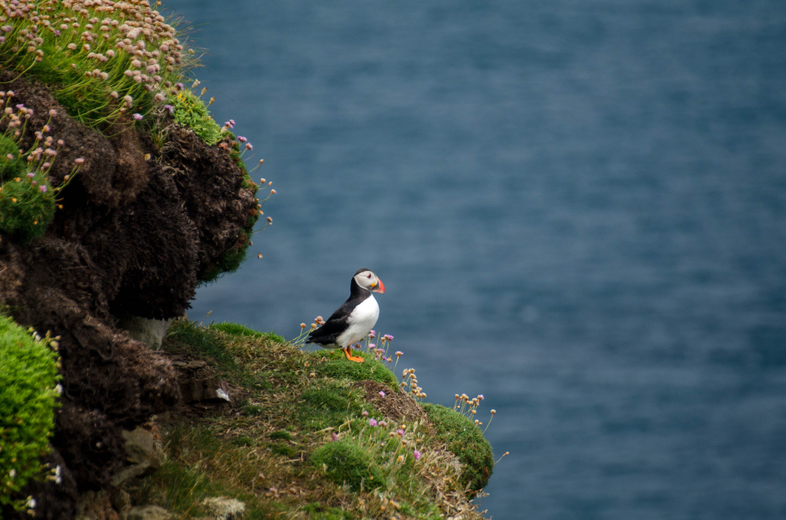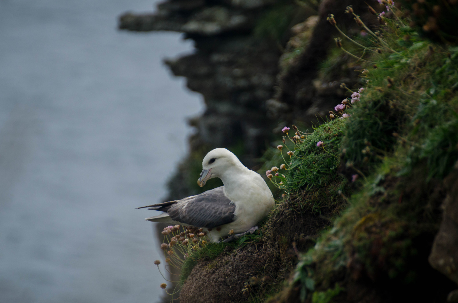 Duncansby Head juts into the North Sea, with the Pentland Firth to its north and west and the Moray Firth to its south. On both sides of the parking lot at Duncansby you can take a stroll and enjoy the view of Northern Fulmar sailing over the cliffs. Other birds you can expect are Atlantic Puffin, Razorbill, Common Guillemot, Black Guillemot, Great Skua, Pomarine Skua and Common Eider.