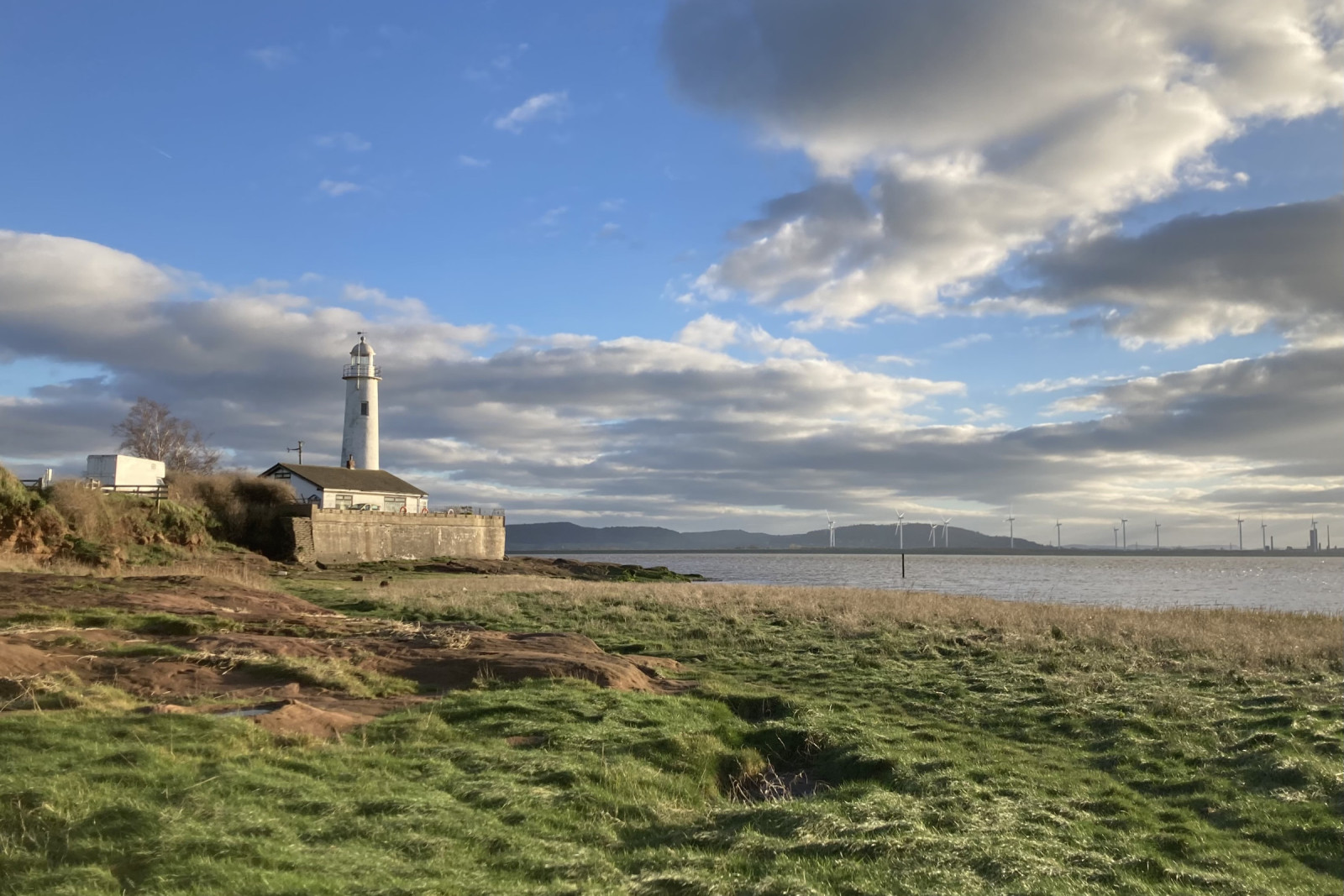 The path alongside the Mersey adds good views of estuary, mudflat and some reedbeds. Waders of various sorts are seen, particularly in winter, when very large counts can occur particularly of Dunlin (sometimes 10,000+) and Black-tailed Godwit (often 1,000+) and Common Ringed Plover (often hundreds), as well as Pink-footed Goose. Herons and egrets are likely, occasionally Cattle Egret. A telescope can be useful to pick out birds on the mud in the centre of the channel or far shore.