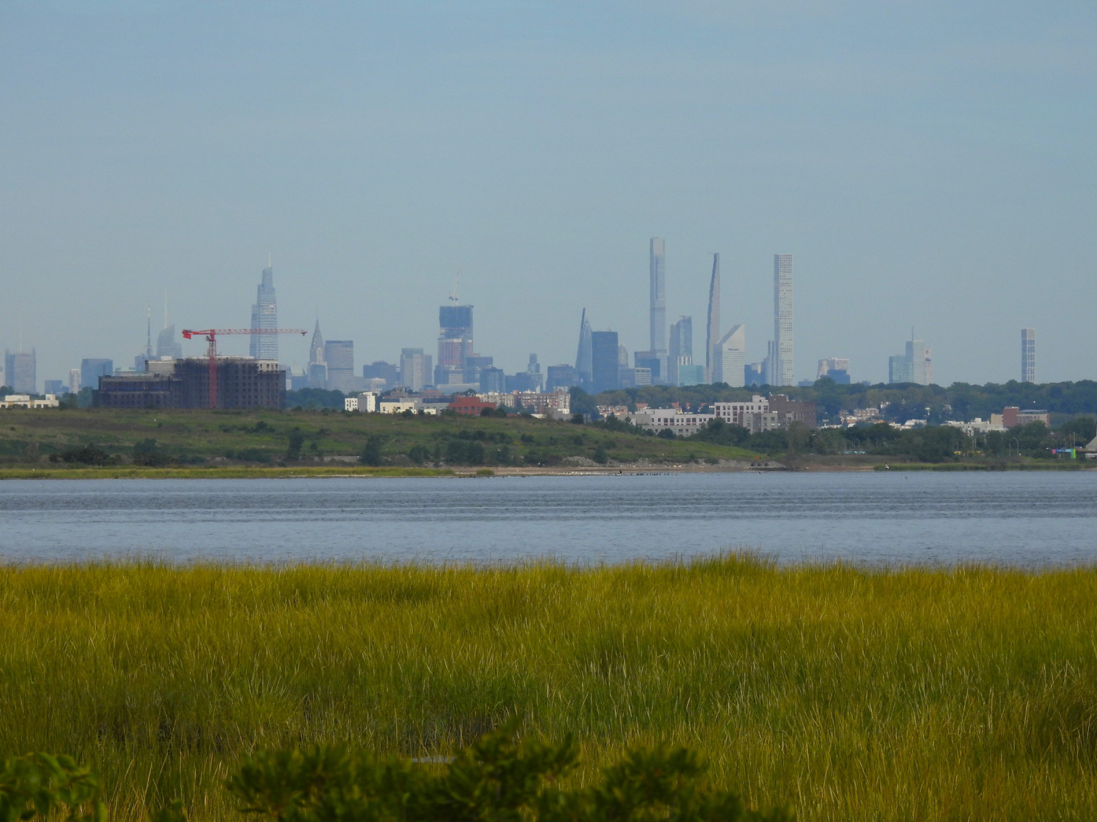 Jamaica Bay National Wildlife Refuge covers 12,600 acres of open bay, saltmarsh, mudflats, islands, upland field and woods and two man-made brackish ponds. It is one of the largest bird habitats in the northeastern United States and is a great place to observe the seasonal bird migration as well as resident species. 332 bird species have been sighted at the refuge over the last 25 years. Flat terrain, variety of habitat, seasonal influxes of birds. East pond access can be wet. Views of the Manhattan skyline.
