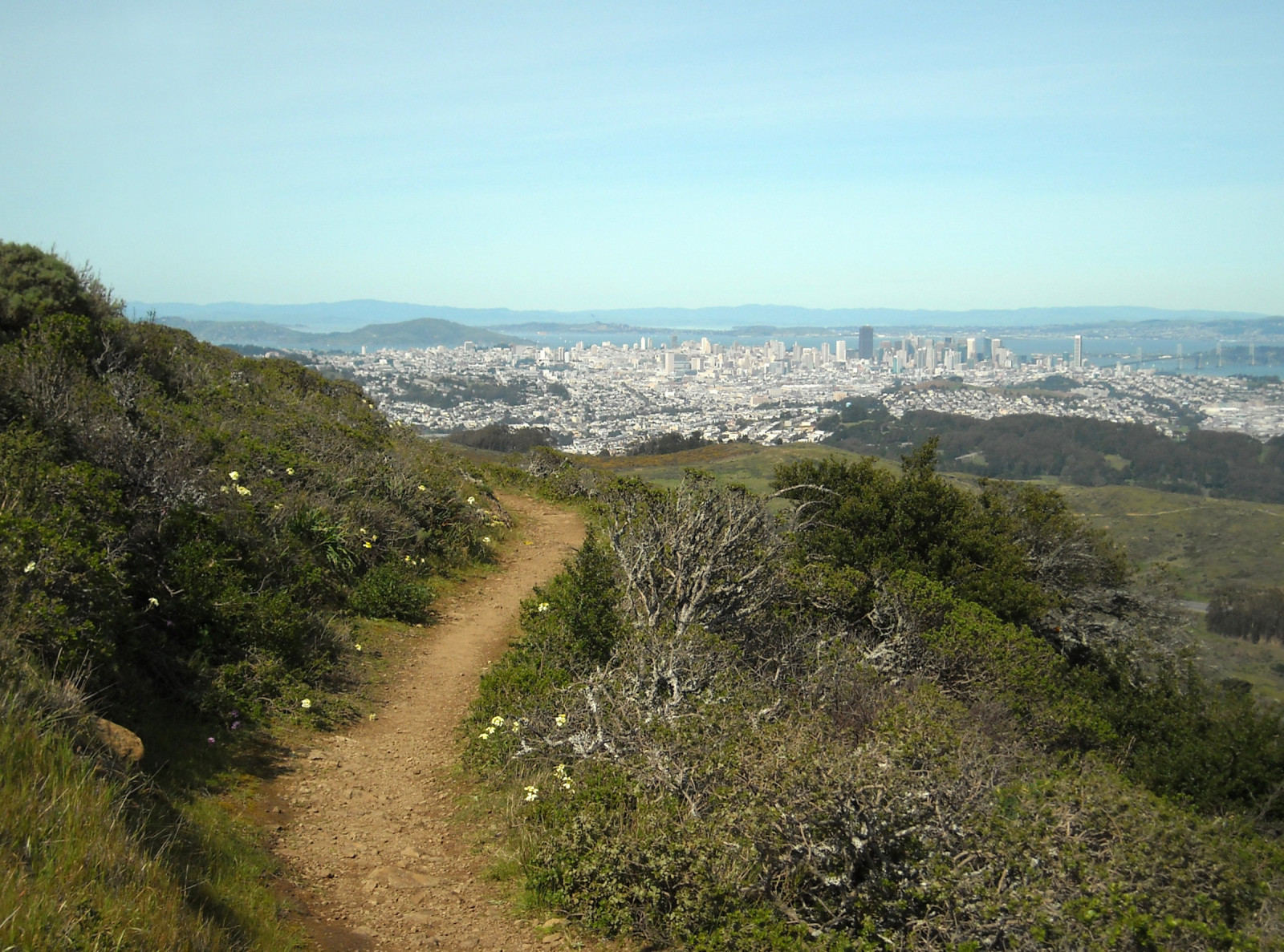 San Bruno Mountain is comprised of two parallel ridges running in a Southwest to Northeast direction. Relatively isolated, they host a number of endangered plant and butterfly species and can trap an interesting number of vagrants in the Fall. There is a relatively level path on the Northern ridge (Saddle trail, accessed from Crocker Ave or the main parking lot off Guadalupe Canyon Parkway).