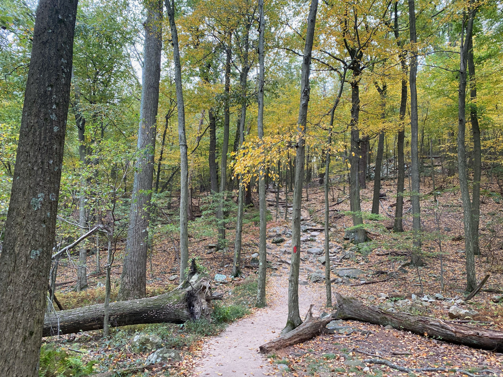 From I-270, take Old Hundred Road, turn right on Comus Road to get to the entrance of Sugarloaf. Parking is allowed only inside the reserve (8am opening) - drive up the mountain to the spots (west or east parking). Click on a P on the map for directions or coordinates. The circular walk indicated on the map is about 6,4 miles (10 km).