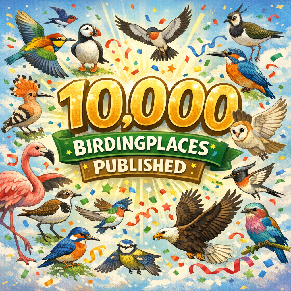 Birdingplaces grew rapidly. First in Europe, but following frequent requests from birders from other parts of the world, it became possible in 2022 to add areas worldwide. And that proved to be a good move. New users flocked in from Australia to Africa, and from America to Asia. By mid-March 2026, the incredible milestone of 10,000 described birdwatching areas worldwide was reached! All areas described in detail by local birders and containing a wealth of information for birdwatching.