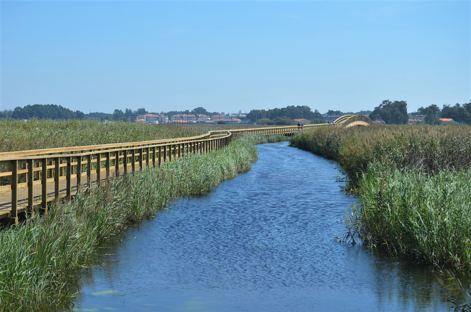 The Esmoriz Walkway has an approximately circular shape and has several entry points and route options. The circular walk around the lagoon is about 4,5 km long, see the map) Pedestrian only. You can park next to the Esmoriz Football Field and start you walk from there.