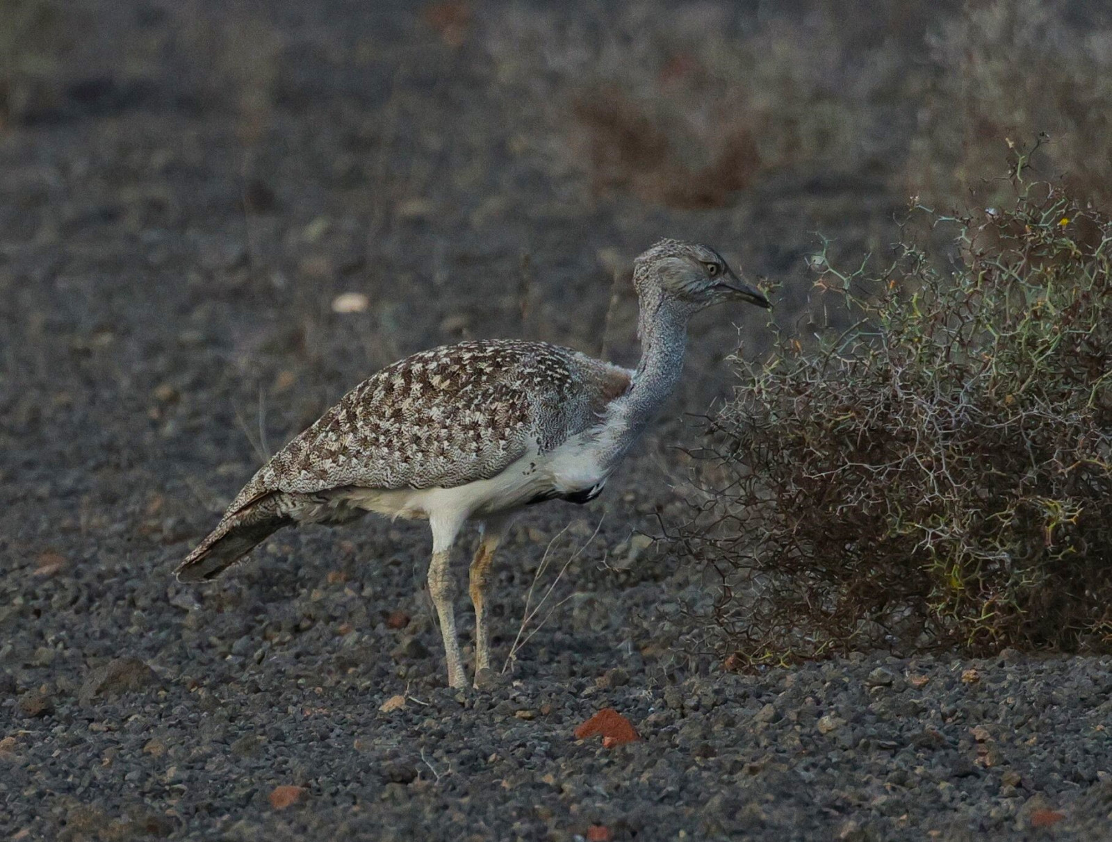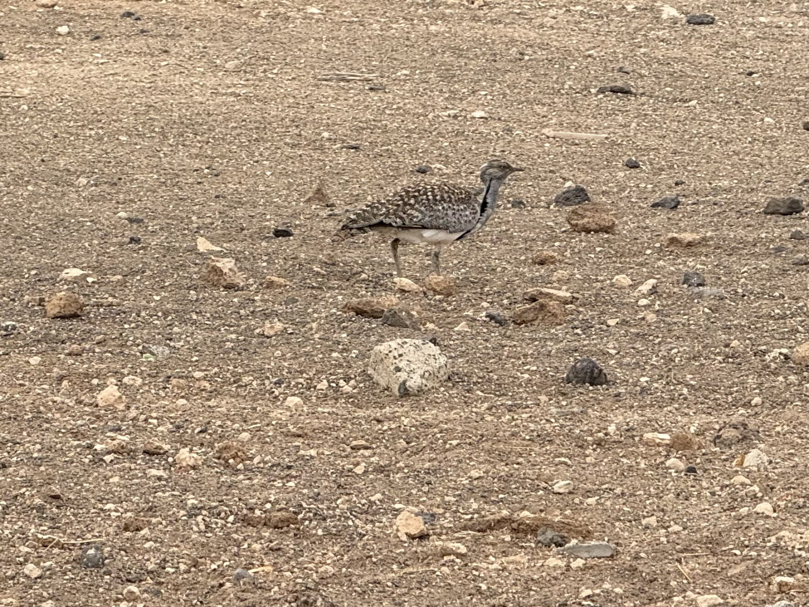 Montaña Tinamala is located in the northeast of the island of Lanzarote. The land south of Montaña Tinamala is very dry. Exactly the barren habitat that the Avutarda hubara africana requires. Our holiday apartment was just around the corner in Los Cocoteros. When we explored the area by car we made some great observations. We saw Avutarda hubara africana very well (see pictures), but also Perdiz Moruna and other birds. Really worth a visit.