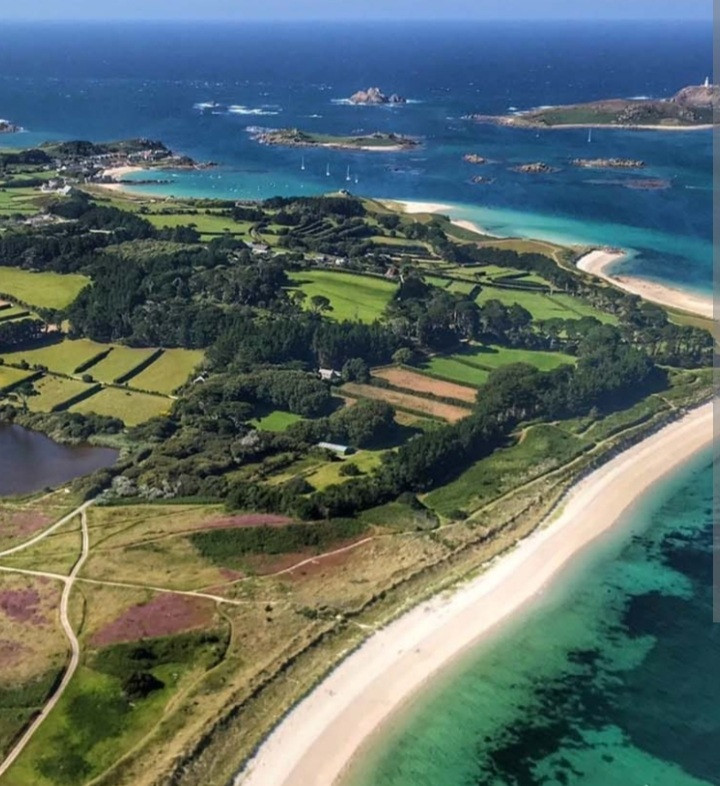Tresco is the second-biggest island of the Isles of Scilly. It is 297 hectares (1.15 sq miles) in size, measuring about 3.5 km by 1.75 km. A variety of scenery is found on the island, including rugged granite outcrops, heathland of the exposed north coast and mainly shell beaches in the east and south. Tresco has a ticklist of 316 bird species, 4 whale species, 4 dolphin species, plus seals and porpoises.