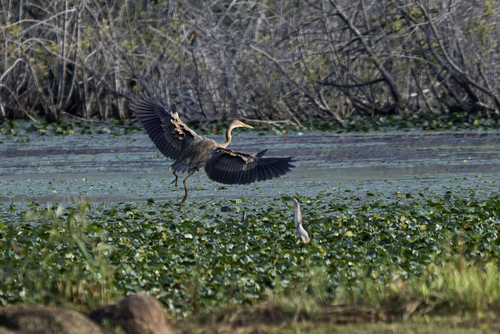 The reedbeds are great for many breeding birds, like Blongios nain, Rousserolle turdoïde and Râle d'eau. Waterplants cover large patches of water, and are great for Gallinule poule-d'eau, and sometimes even Marouette poussin.