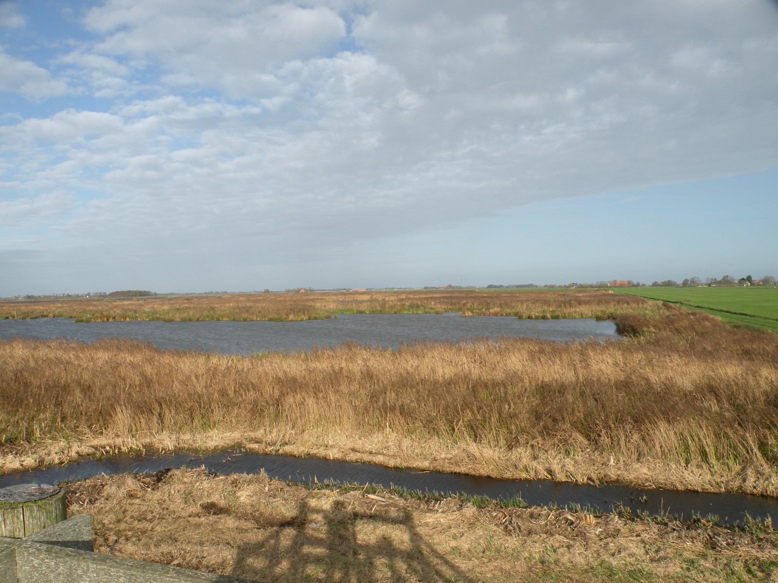 It Swin is a small lake surrounded by reed beds and marsh. In the autumn you can often see large groups of Canard siffleur. Sarcelle d'hiver, Canard souchet, Fuligule milouin, Fuligule morillon, Harle bièvre and Harle piette also visit the area. There are many sorts of geese around in the meadows, including the Oie à bec court and Pluvier doré. During the breeding season there is a chance on Gorgebleue à miroir,Busard des roseaux, Butor étoilé, Marouette ponctuée. During migration Spatule blanche, Grande Aigrette and Busard Saint-Martin.