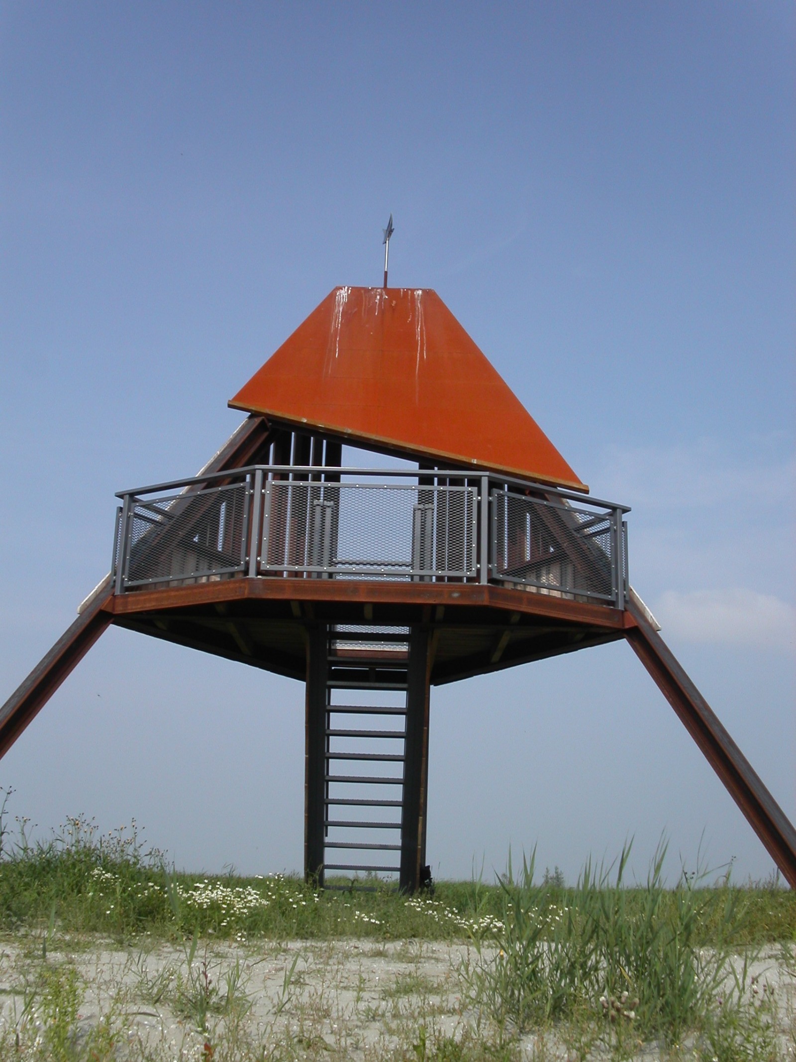 From the remarkable steel watchtower you have a good view of the Kollumerwaard. In the spring and summer there are many reed and marsh birds to see and hear, including Locustelle tachetée, Rousserolle verderolle, Traquet motteux, Tarier pâtre, Tarier des prés, Gorgebleue à miroir, Locustelle luscinioïde and Panure à moustaches. Butor étoilé and Blongios nain also feel at home here. Other reported birds include Grande Aigrette and Aigrette garzette, Faucon pèlerin, Faucon émerillon, Buse pattue, Busard cendré and Busard Saint-Martin.