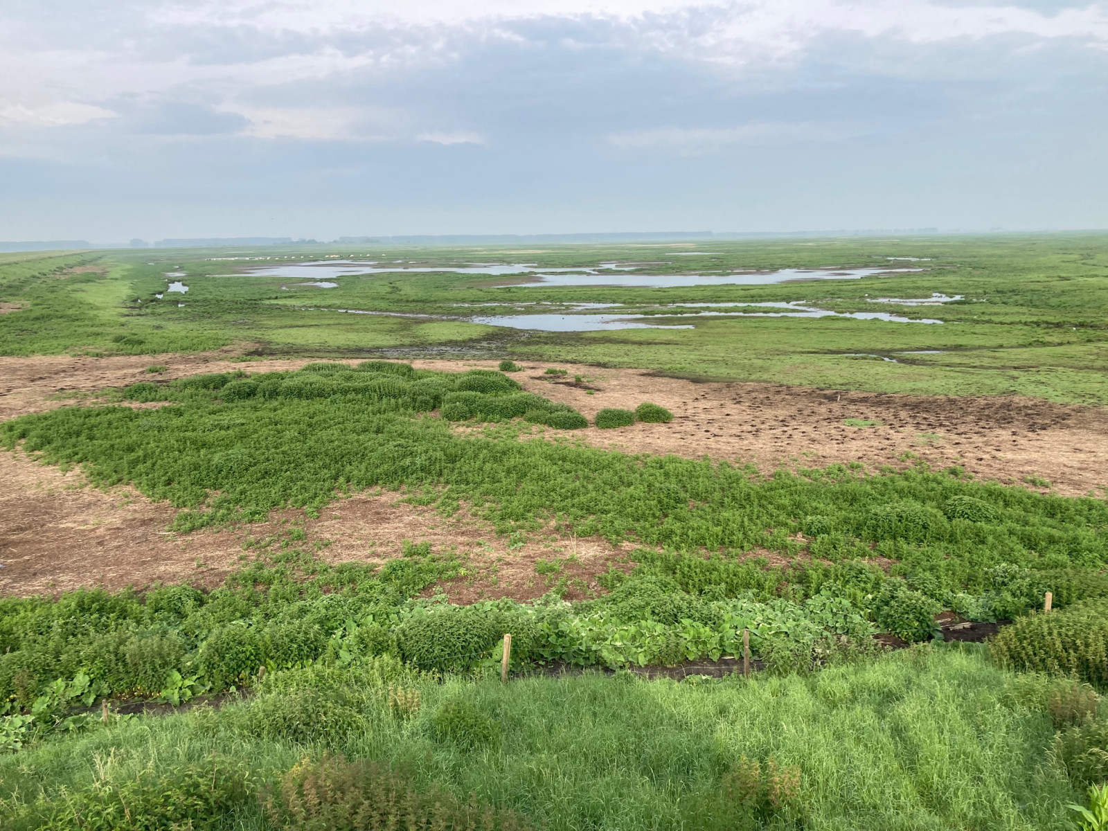 A rugged landscape, with mud flats, unique brackish vegetation, full of waders and reed birds located on the left bank of the Western Scheldt estuary.