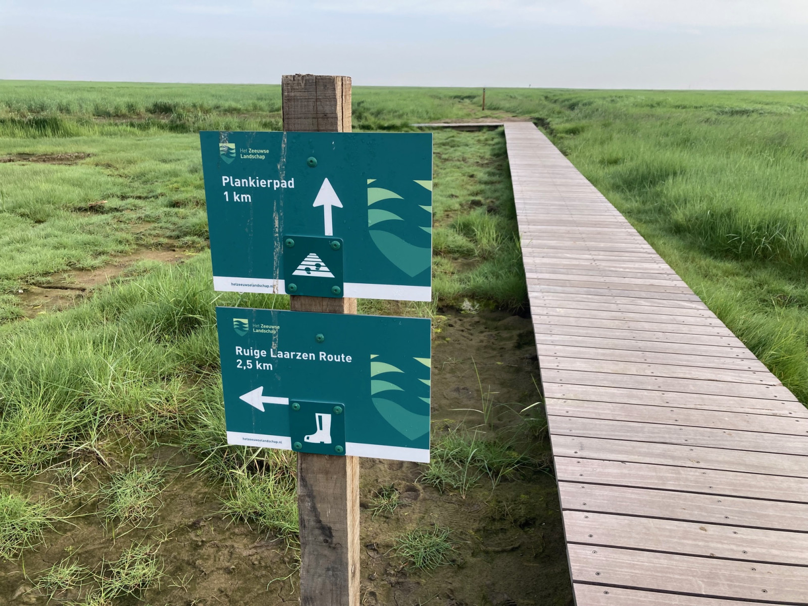However, to see the birds, you can also just follow the road along the dike (by bike or car). Here you will find three bird watching hides that provide a good view on the Drowned Land of Saeftinghe, especially at high tide. There are two short walking routes (1 and 2 km long respectively) that start at the visitor center. These routes can be walked at (normal) flood without a guide. The route shown on the map, combines these two routes.