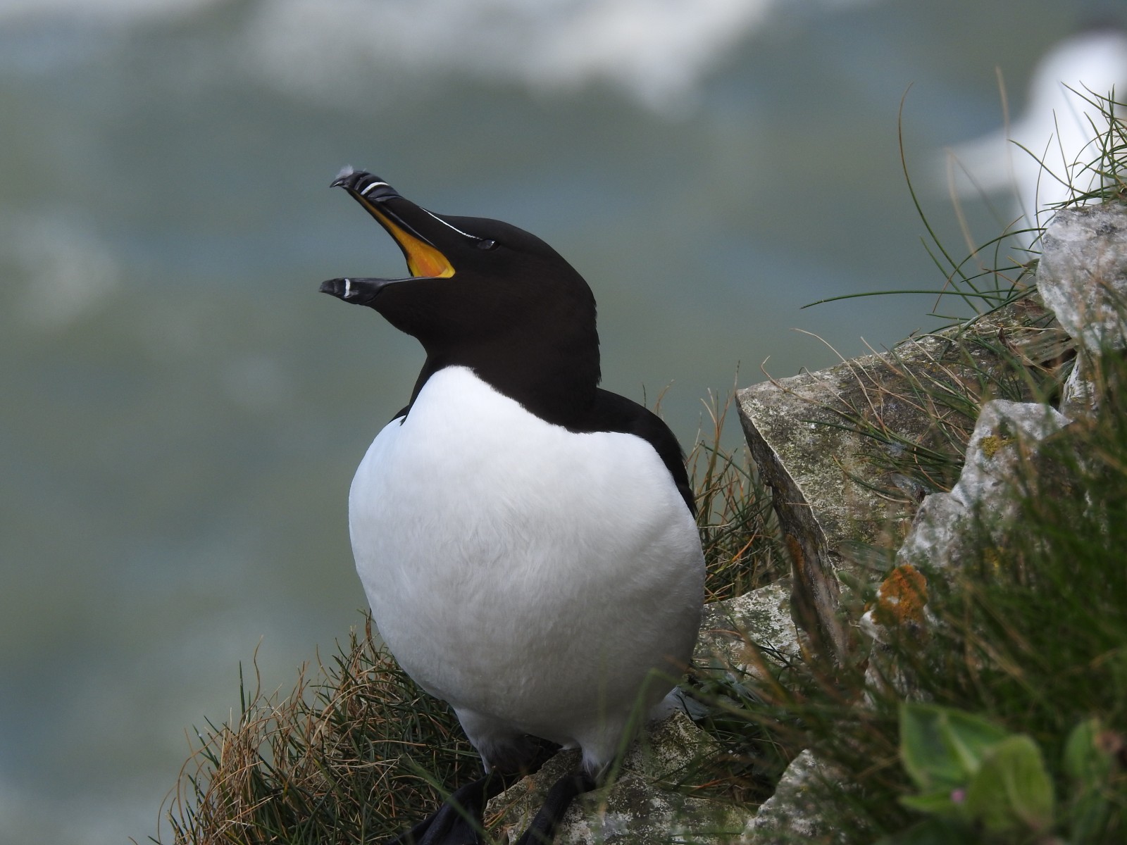 Apart from the Fou de Bassan, which stay until October, most of the auks leave the cliffs in July and form rafts on the sea before moving out to sea as the months progress. Seabird migration in autumn can also bring shearwaters and skuas, as well as Minke Whale and Bottlenose and White-beaked Dolphins.
