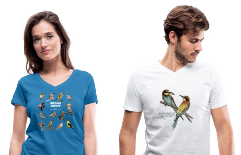 Nous avons de belles nouveautés dans notre boutique en ligne. Vous pouvez désormais porter un tout nouveau T-shirt décoré d’un majestueux pygargue à queue blanche, ou un autre arborant une fière huppe fasciée. Vous pouvez également toujours opter pour les deux guêpiers d'Europe ou notre avec notre logo ! Avec l'achat d'un vêtement, vous soutenez directement Birdingplaces. Merci ! Cliquez ici pour accéder à notre boutique en ligne.