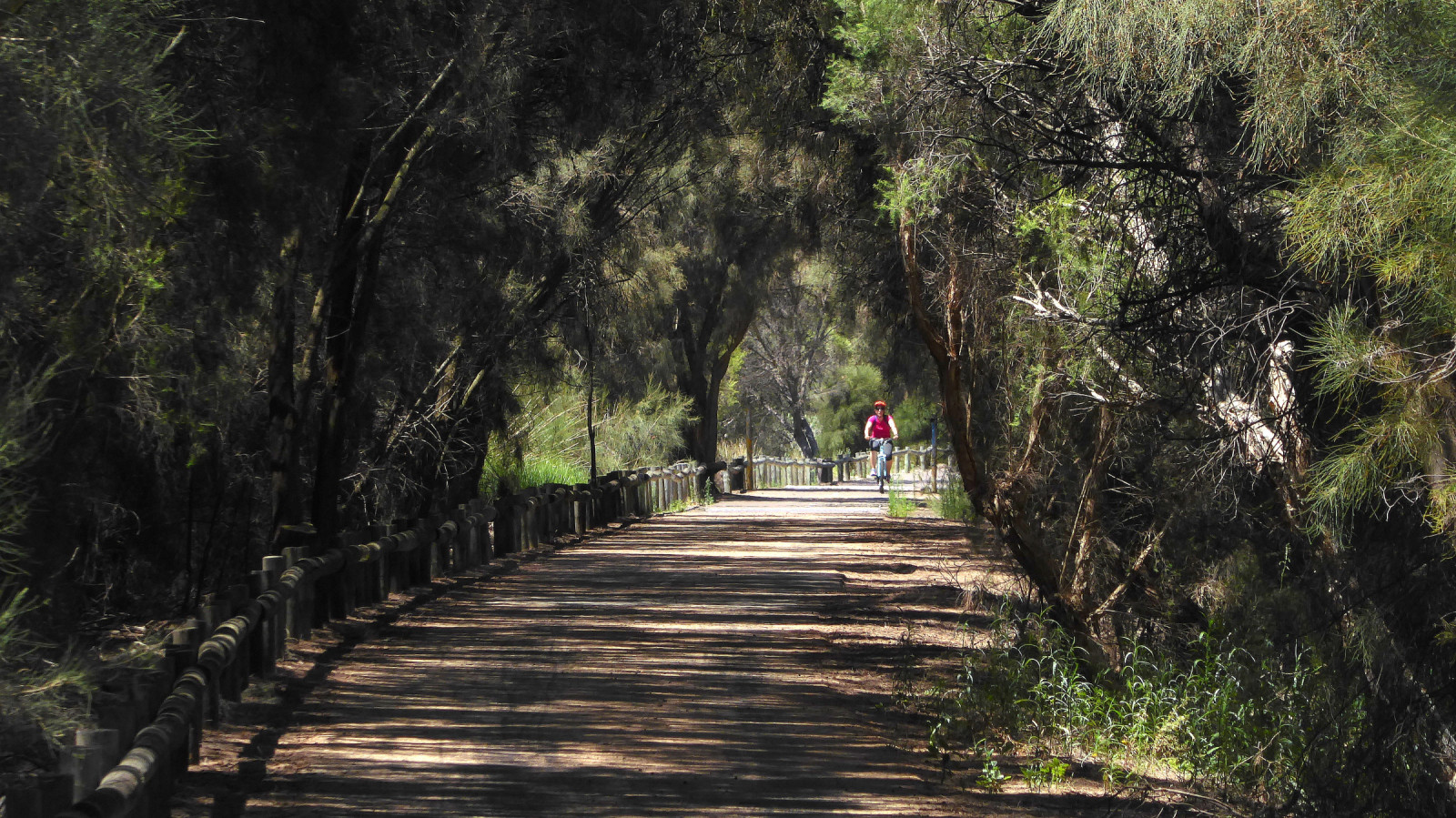 Baigup Wetlands is located along the Swan River in Perth. Access is from the Kelvin Street/Swan View Terrace junction in Maylands (limited street parking only) or from A.P. Hinds Reserve (enter from car park at the end of Milne Street). Press a P on the map for directions to a parking spot. A joint use walkway/cycle path runs from the car park, under Garratt Road Bridge and right through the reserve to Kelvin Street.