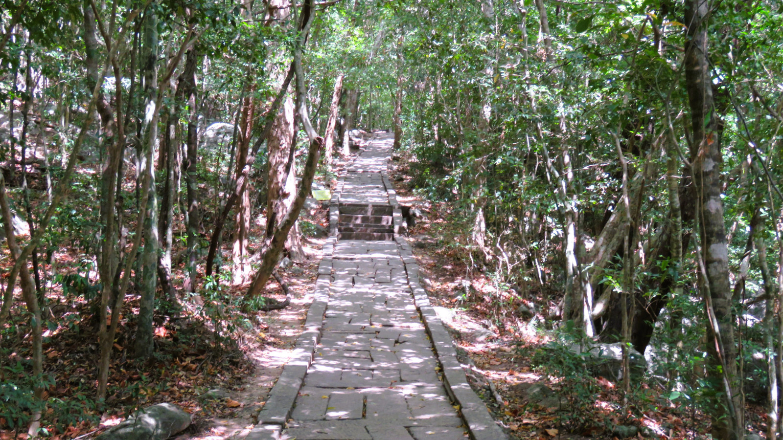 Ritigala is located between Anuradhapura and Polonnaruwa, near the village of Ganewalpola. An unpaved road in good condition gives access to the entrance point. This road goes through dense jungle and is also already good for birding (look out for Sri Lanka Spurfowl crossing the road). From the entrance you can walk up the ancient stairs and path to the monastery. A rather steep walk of almost 1,5 km. Along this path and the open spots and buildings it passes you have often good views of the canopy. Entrance fee of the site is about $ 6.