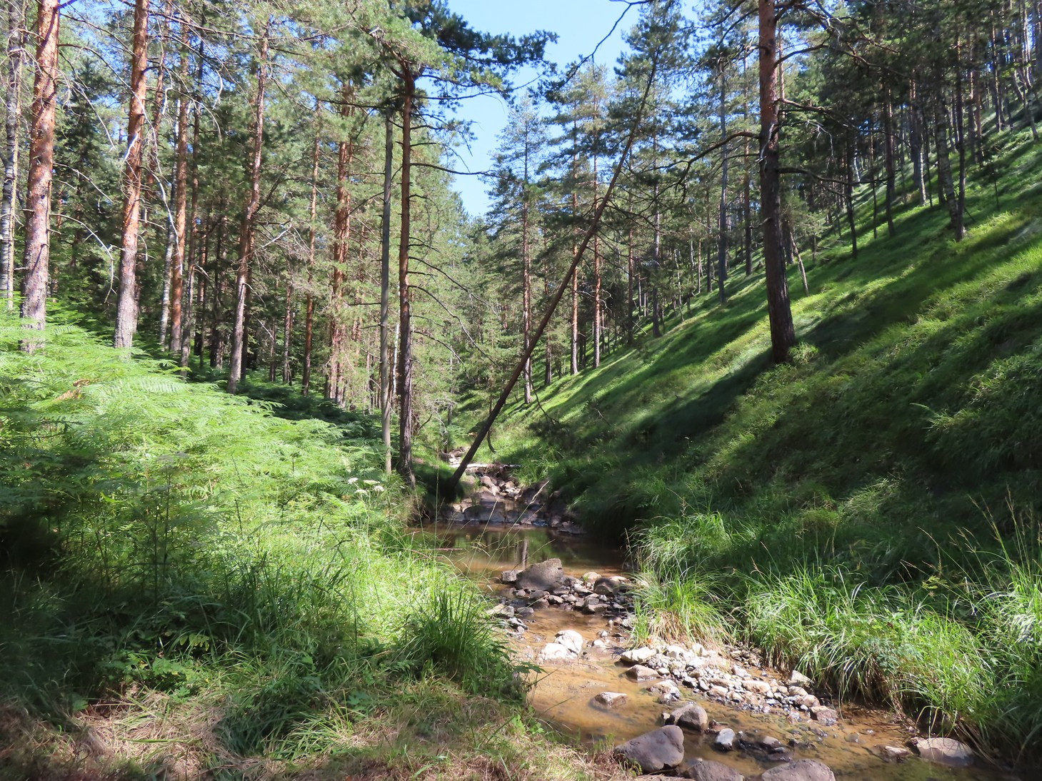 Divčibare and Maljen are at the center of the Valjevske Mountains, situated between the Povlen and Suvobor mountains. Divčibare is on the 980m highland plateau covered with pine forest. The highland is surrounded by several Maljen peaks, like Kraljev Sto ("King's Dish") at 1104m, Crni Vrh ("Black Summit") at 1096m, Paljba ("Shooting") at 1051m, and Golubac at 1056m. Two mountain streams Bela and Crna Kamenica ("White and Black Stonestream") pass through the plateau, carving deep cuts through the Maljen mountain. The two Kamenica streams flow to the southeast and eventually join into the Kamenica River in the Tometino Polje village, on the southern Maljen slopes.