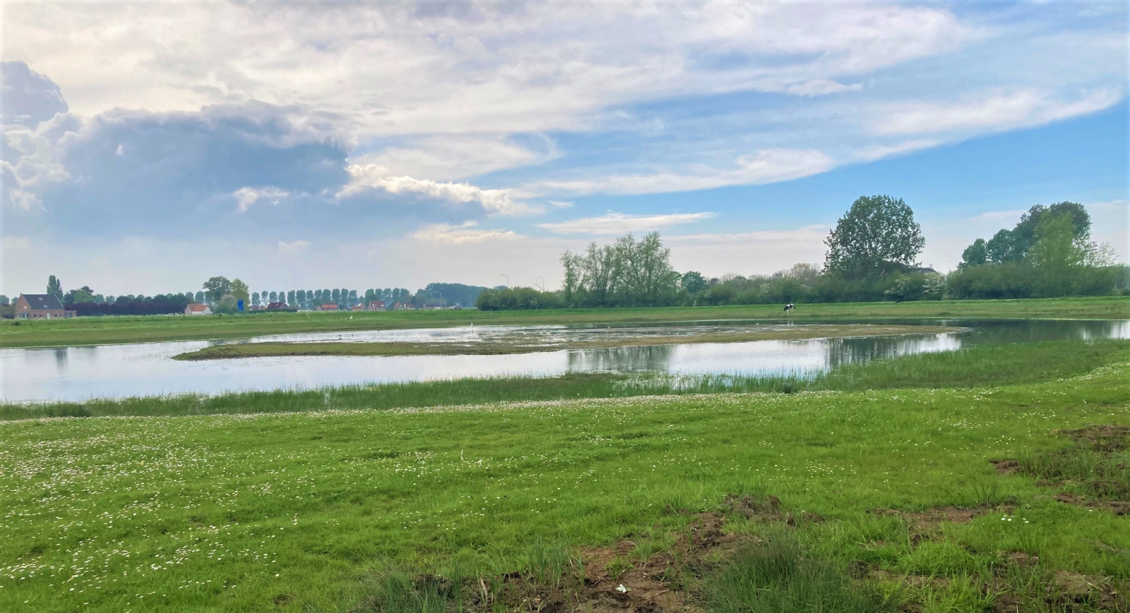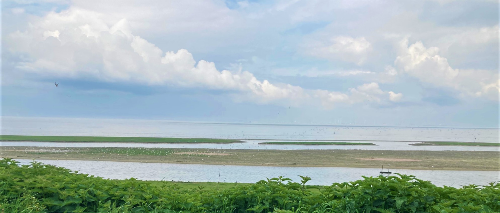 Voorland Eén is located on the edge of the Western Scheldt, between the villages of Hoofdplaat and Nummer Een. In this small nature reserve there are dikes, hay land, meadows, a few small woods, reed land, drinking pools and there is a low part that is completely flooded in the spring. The area has a varied marsh and a bird island. At high tide, the birds come here to rest, wash their plumage and drink. Many birds also breed here.