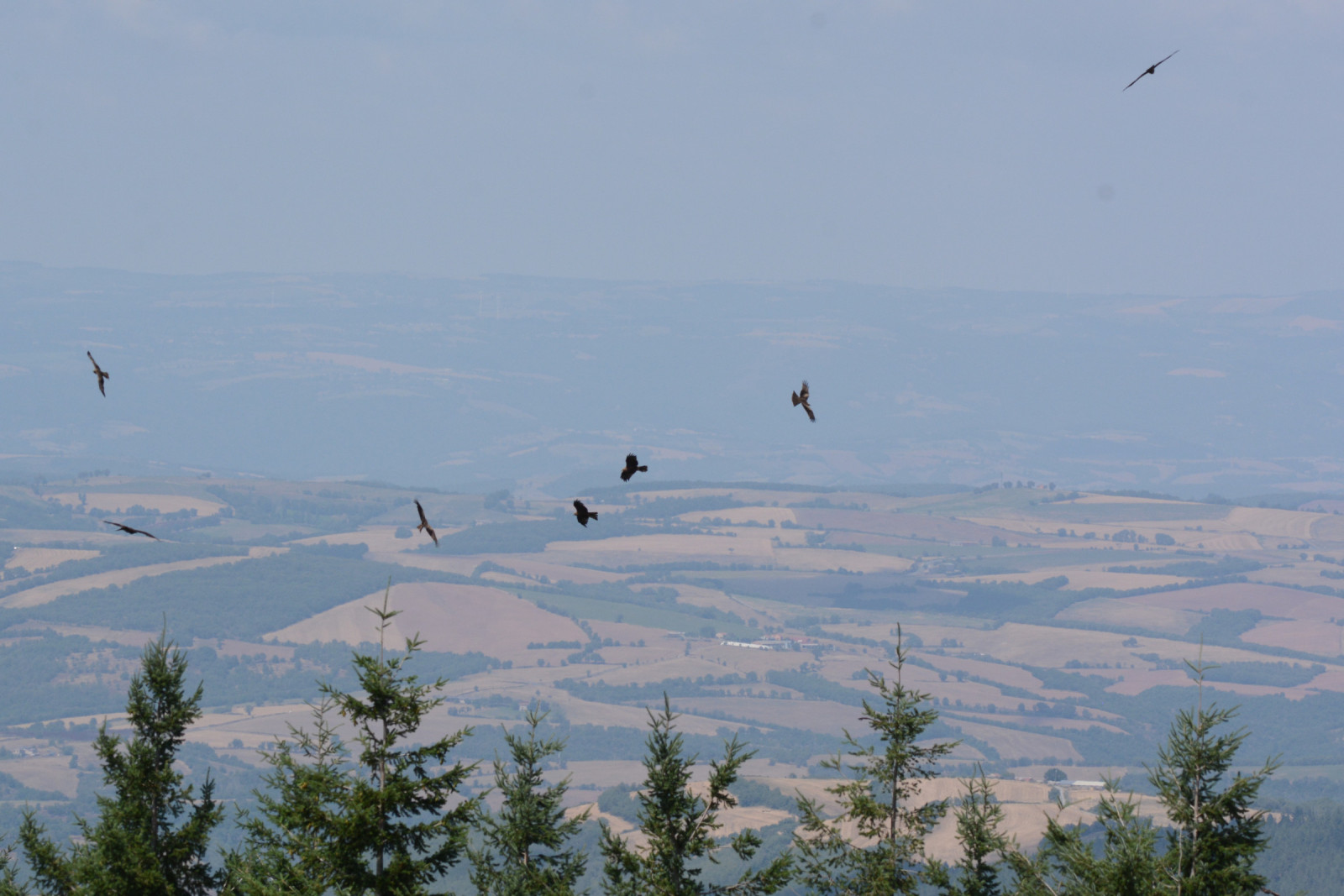 Roquecézière is situated where the Haut-Languedoc and Grands-Causses regional nature Parks meet. The Crêtes de Roquecézière (Roquecézière ridges) are an open area of fields that are favourable for watching autumn migration, particularly that of birds of prey. The best period : early August to mid-October with raptor passage at its best from late August to mid-September. Very often migrants pass in the morning, movement dying in the early afternoon. About 3000 birds of prey are counted each year in three weeks of monitoring, at the end of August-beginning of September. The site also allows for a spectacular panoramic view over the southern Aveyron and the Monts de Lacaune. Birds you can see on migration or in the area are Vepsevåk, Svartglente, Glente, Fiskeørn, Sivhauk, Enghauk, Slangeørn, Dvergørn, Svartstork, Stork, Bieter Alpejernspurv, Gåsegribb, Munkegribb, Kongeørn, Myrhauk, Spottesanger and Tornskate.