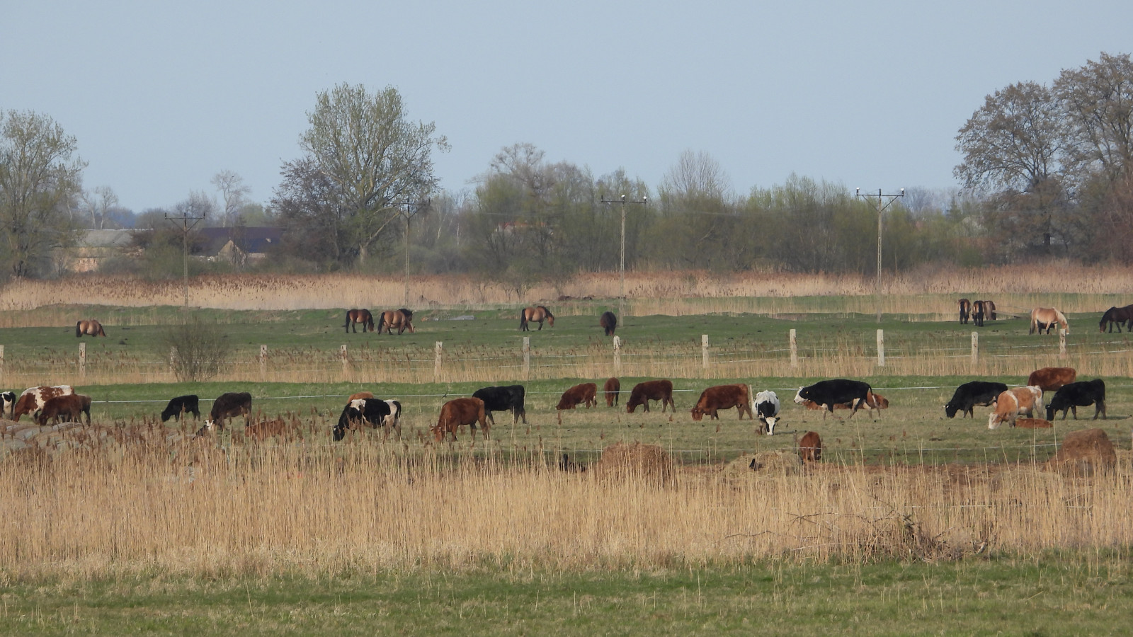Wandering along the route, picturesquely large herds of horses and cows graze in the surrounding meadows.