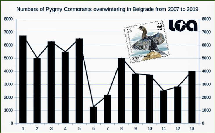 For more than 15 years during which the League for Ornithological Action, a local NGO, has been following the Dvergskarv in Belgrade, the maximum number was recorded in the winter of 2007/2008, when the population counted 6,750 individuals. This shows the great importance of the Sava riverbanks, in the heart of a capital, for the conservation of biological diversity, which has an importance that transcends national borders.