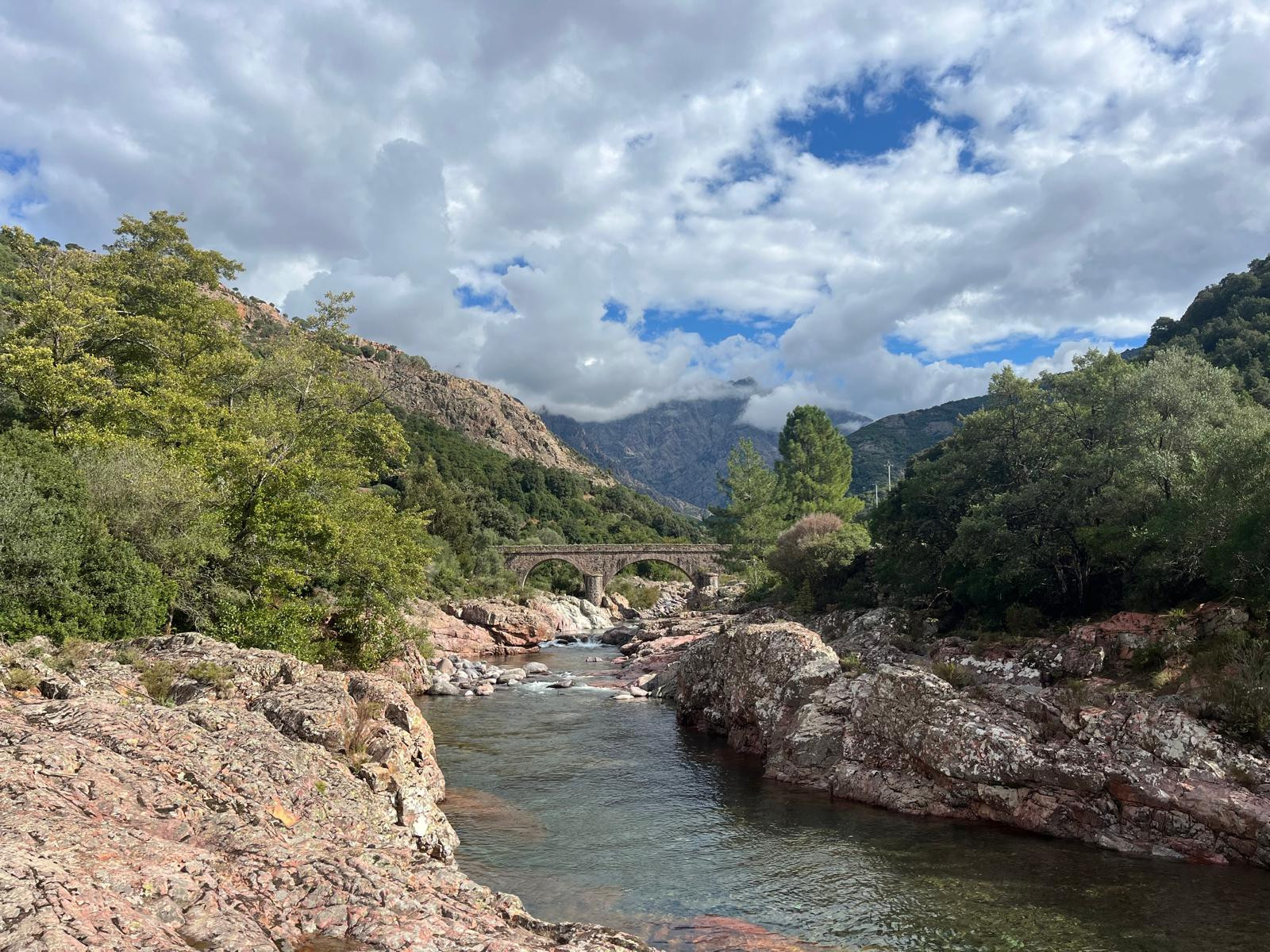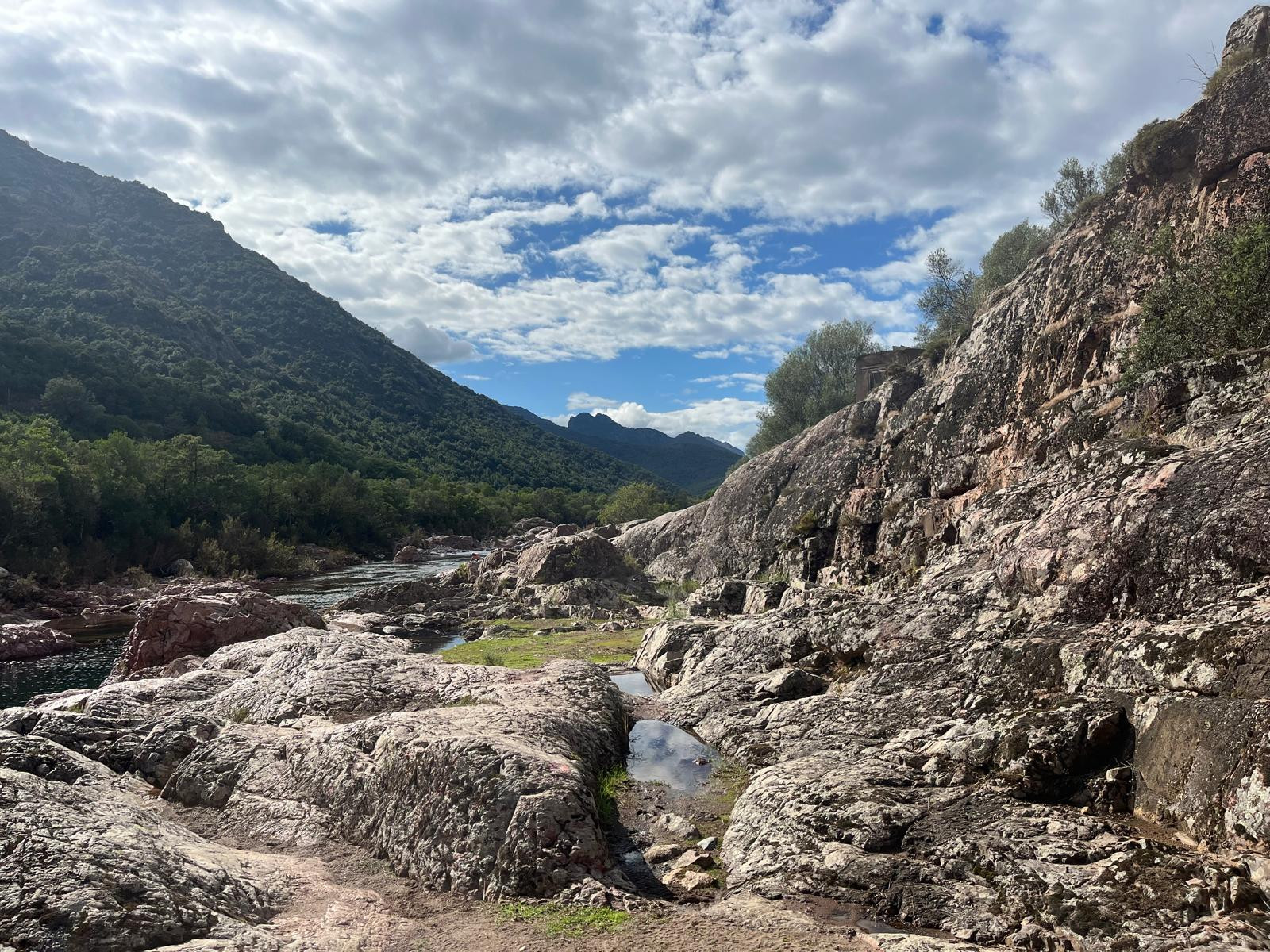 Manso is located in the Fango valley in the northwest of the island of Corsica. There are some parking spaces along the road at the foot of the hill every now and then. From there, you can make a circular walk in various ways, partly on the paved road and then on unpaved paths. The part to Manso can be walked there and back in an hour, the circular walks can be made as long as desired. The site can also be reached by car, but then a round trip is not possible.