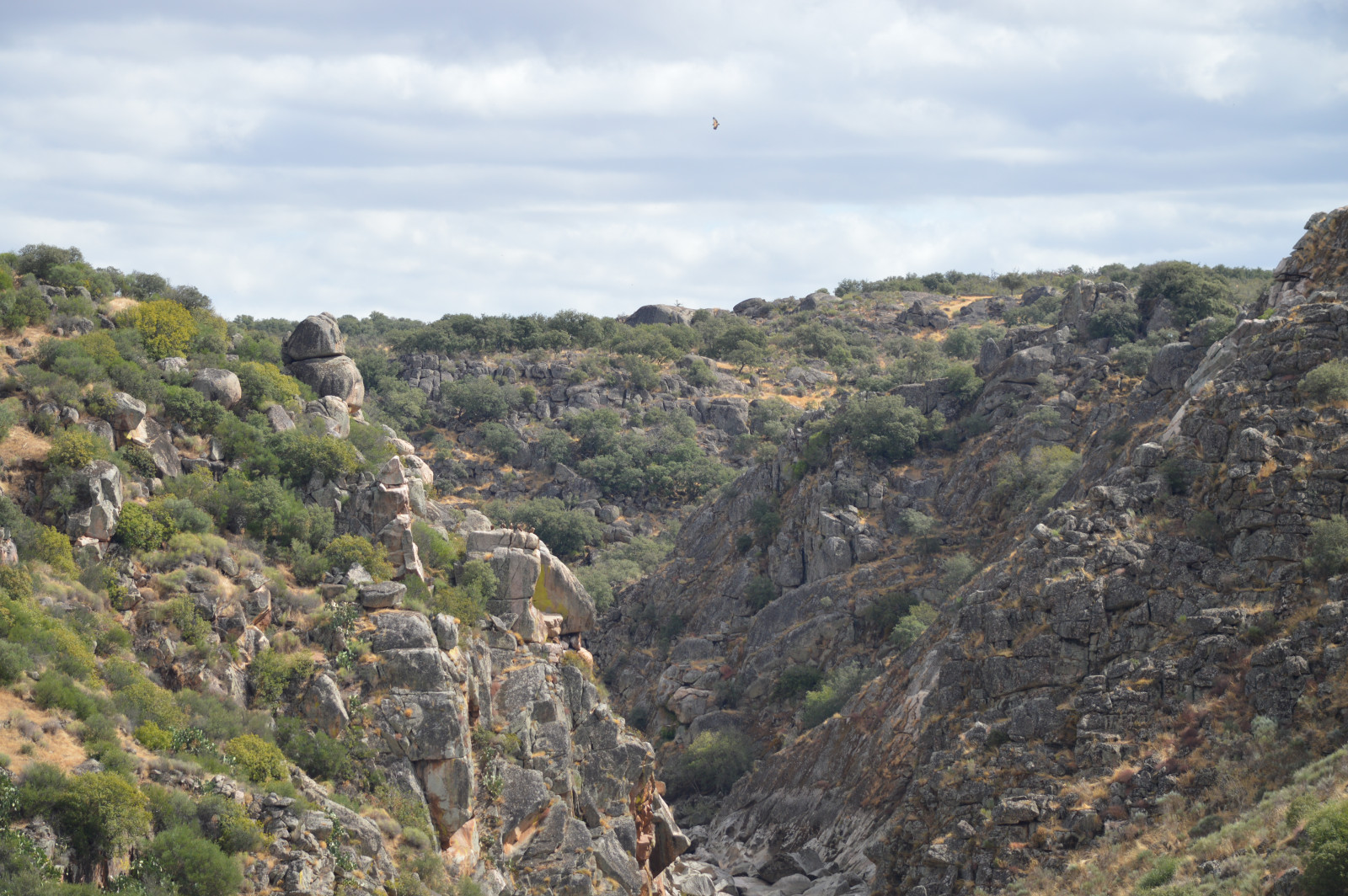 Canhão do Erges is one of the most inhospitable and remote places in Portugal. The Erges is still a wild river with great erosive capacity that led to the formation of three impressive gorges within a short distance. Exploring these canyons, where the river flows at a depth of 150 m, is a perfect opportunity to discover a great diversity of birds. The cliffs are an important nesting and resting place for Grifo-comum, Abutre do Egipto, Black Vulture, Cegonha-preta, Águia de Bonelli, Melro-azul and Bufo-real. Here, the skies are also crossed by birds of prey like Águia-cobreira, Águia-calçada, Águia-real, Milhafre-real, Milhafre-preto, Águia-d'asa-redonda and aerial birds such as Andorinhão-real, Andorinhão-preto, Andorinha-das-barreiras, Andorinha-das-chaminés, Andorinho-dos-beirais, Androinha-das-rochas and Andorinha-dáurica.