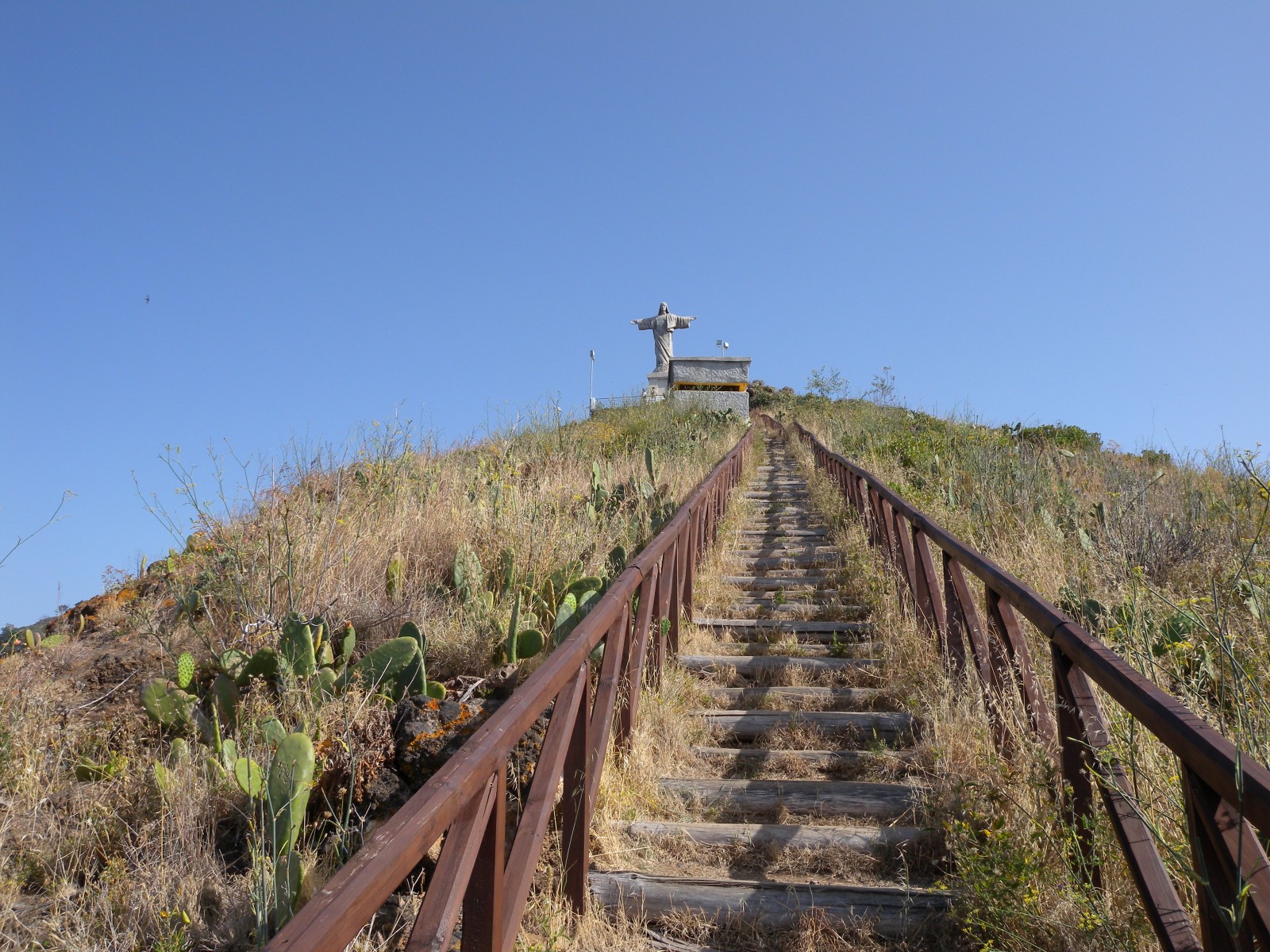 There is a parking lot right at the beginning of the peninsula. To the left of the statue, a narrow path goes down to the tip of the peninsula. From there one searches the sea for the pelages.