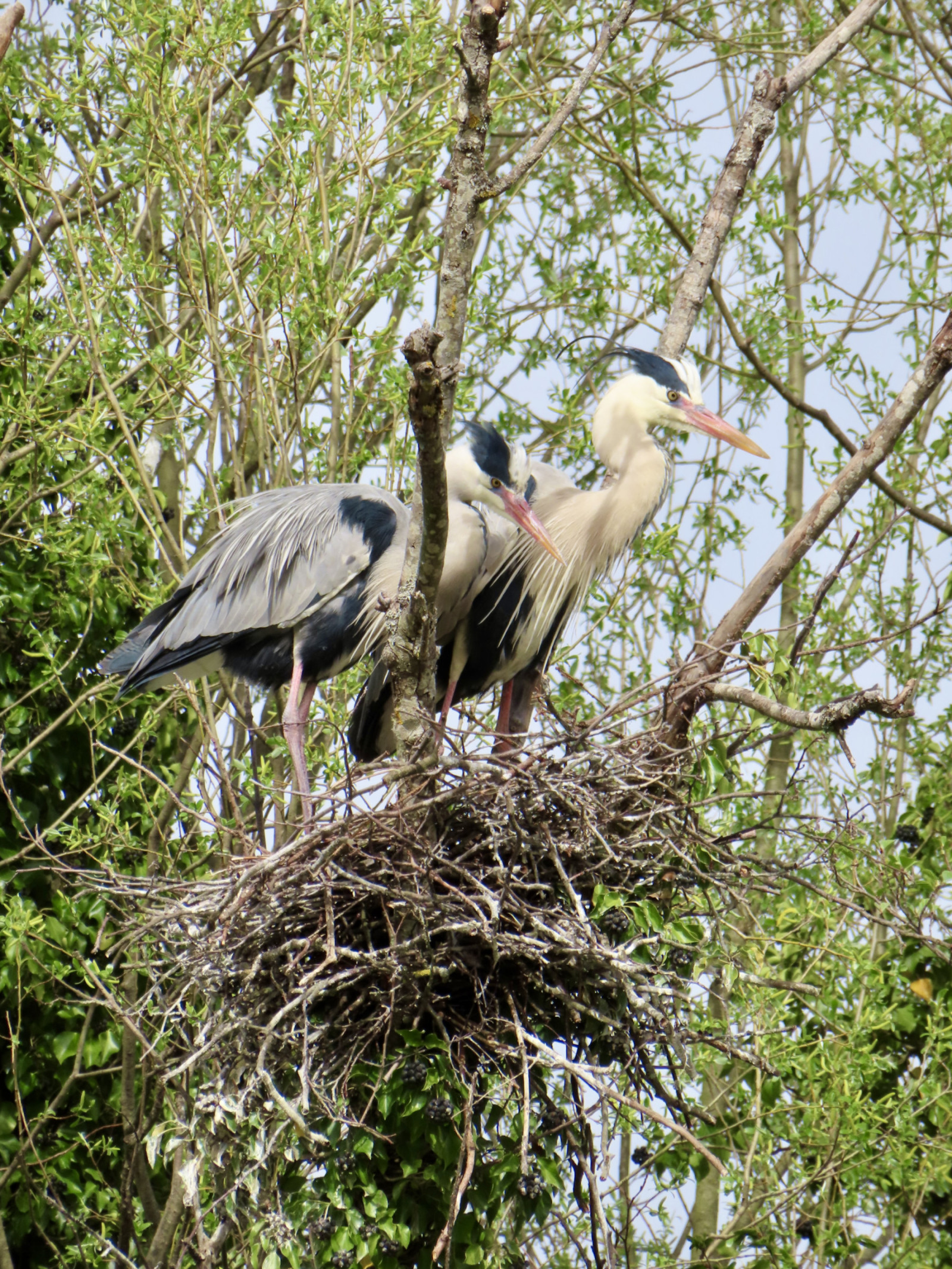 From February, Stârc cenușiu breed on an island. This allows fascinating observations of the feeding and the progress of the young birds from the walking path. Occasionally a Barză albă may be looking for a bite in one of the meadows next to the lake.