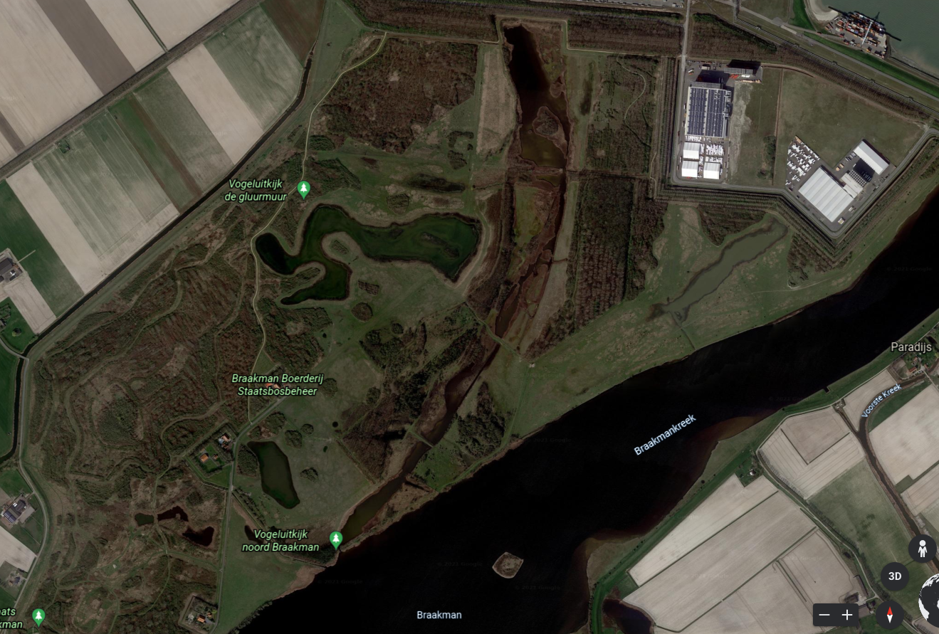 De Braakman is a former estuary of the Western Scheldt in the province of Zeeland. De Braakman and its surroundings are a varied area with meadows, fields, forests, creeks, salt marshes and mudflats. The wide variety of biotopes, the location directly along the Western Scheldt and the presence of a lot of water guarantee many species and high numbers of birds. To date, nearly 300 bird species have been seen in the Braakman area. In the winter and during the migration period many water birds reside. In the summer, the forests and reed collars are good for songbirds. Many rarities have also been seen over the years, including strakoš červenohlavý, pobrežník ostrochvostý, pobrežník škvrnitý, rybár tmavokrídly, kalužiak jarabý, prieložník stepný and brodník sivý.