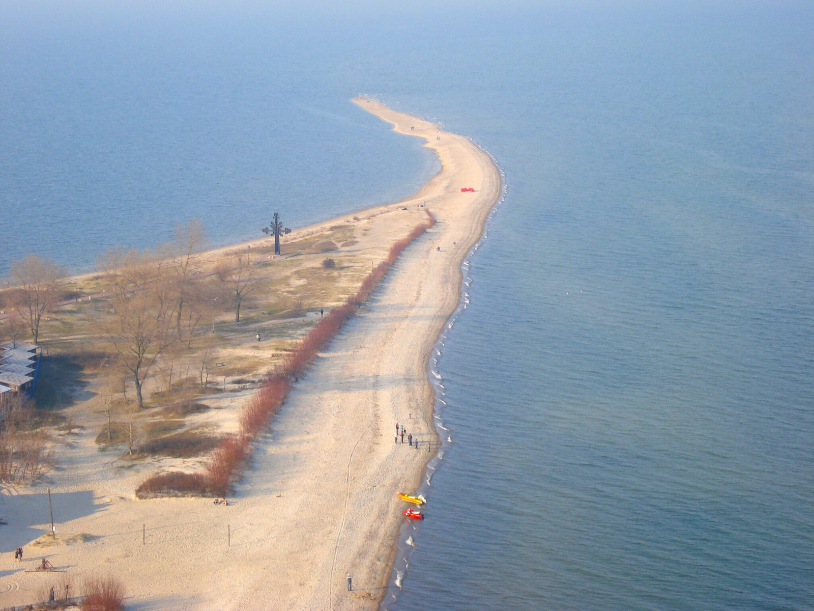 A narrow sandy strip of land jutting into the waters of the Bay of Gdańsk