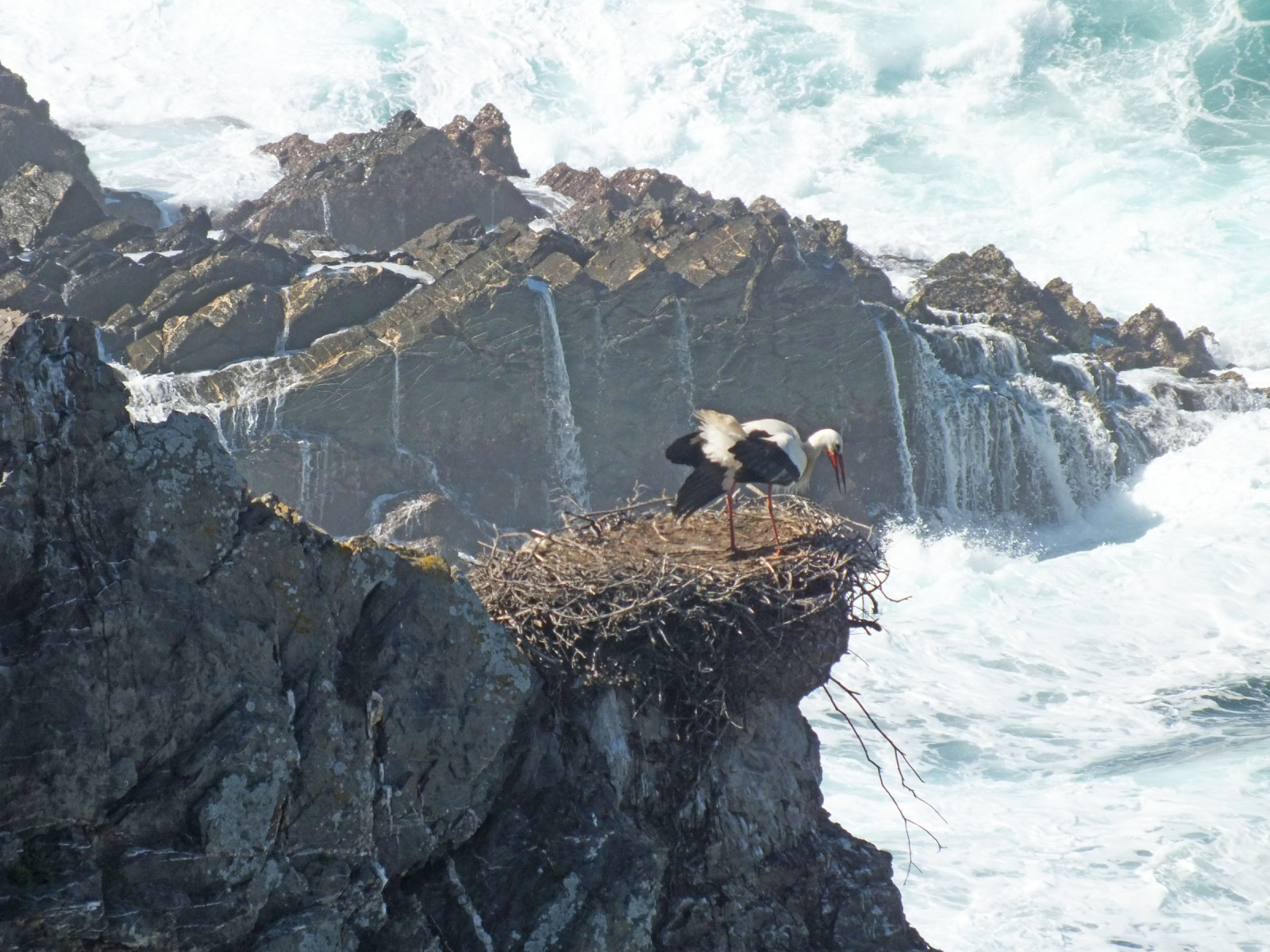 Português: Nestes penhascos, é possível observar muitas bocian biely a nidificar no final do inverno e na primavera. Acima desta costa, há um caminho estreito que revela novas formações rochosas, enseadas e um oceano selvagem. Cuidado com as arribas. A maioria delas são seguras, contudo, devem ser encaradas com cautela.