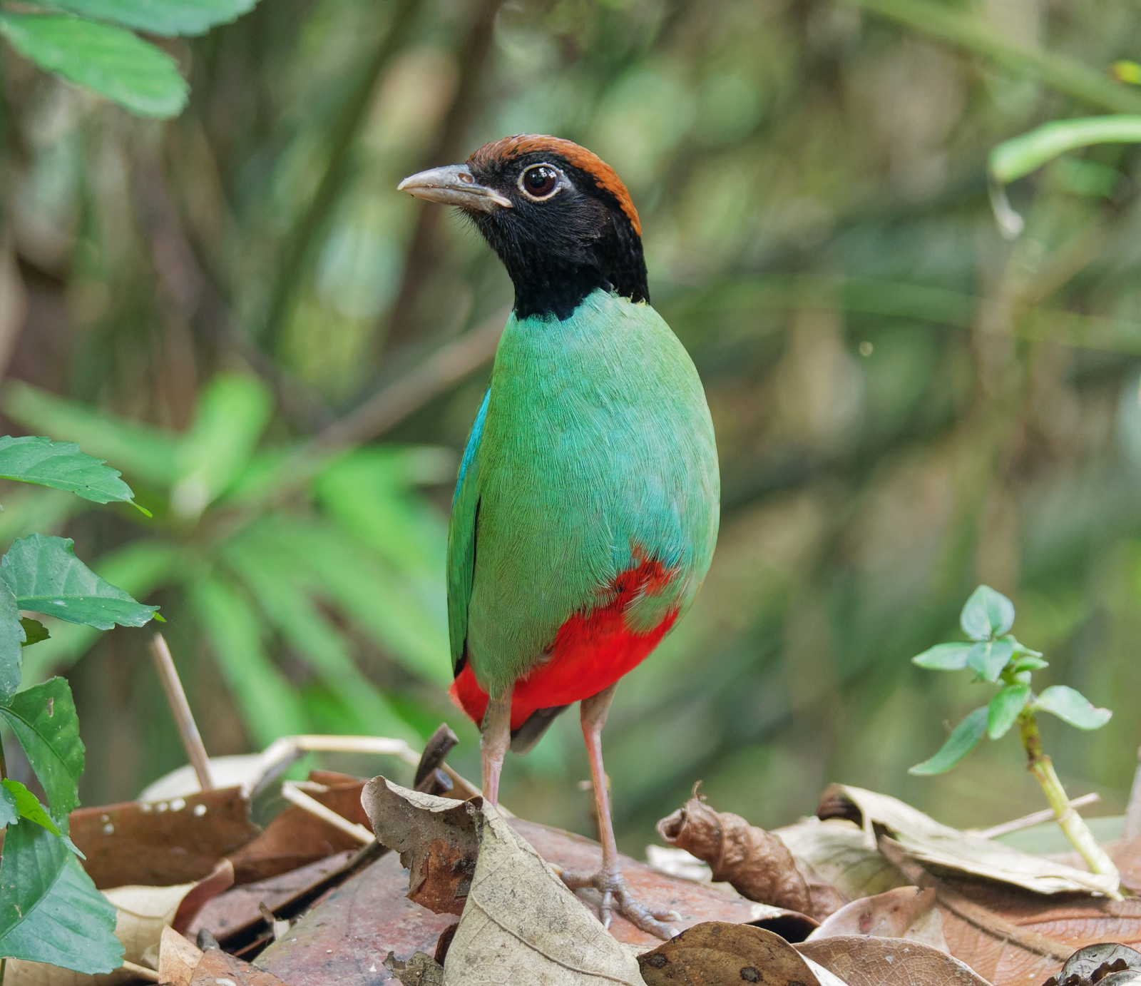 Common residents include Hooded Pitta and the Black Crowned Pitta. Several hornbill species are present in the forest around the Eco Camp: White-crowned Hornbill, Wrinkled Hornbill, Oriental Pied-Hornbill and the Rhinoceros Hornbill are the most common. Colourful birds such as the Black-and-red Broadbill, Banded Kingfisher and the Diard's Trogon are also not uncommon sights. On very rare occasions the Bornean Ground-cuckoo and Giant Pitta have been observed.