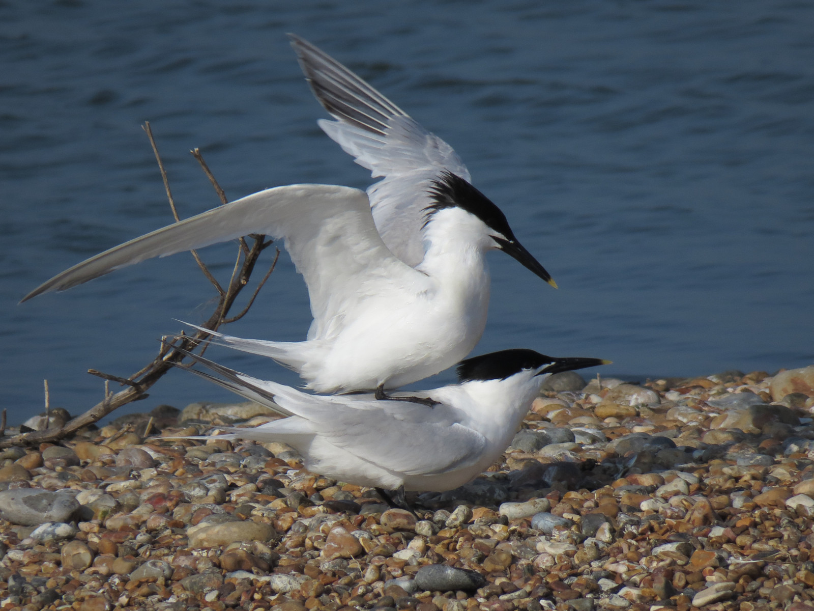 Rye Harbour is most famous for its bird life and in particular its breeding colonies of mala čigra, navadna čigra and kričava cigra. In recent years the populations of these terns and other ground nesting birds (such as komatni deževnik, sabljarka, školjkarica, rdečenogi martinec, priba, and kupcar) have increased in number and breeding success. This has been achieved through careful habitat management and implementing conservation measures such as the erection of electric fencing enclosures (to deter fox and badger) and a team of voluntary wardens. So far more than 280 species of birds have been recorded on the Reserve, of which over 90 have nested. Apart from the interest of the breeding birds, Rye Harbour is also a good place to observe bird migration, while in winter large numbers of wildfowl and waders gather to take full advantage of the relatively undisturbed Reserve area.