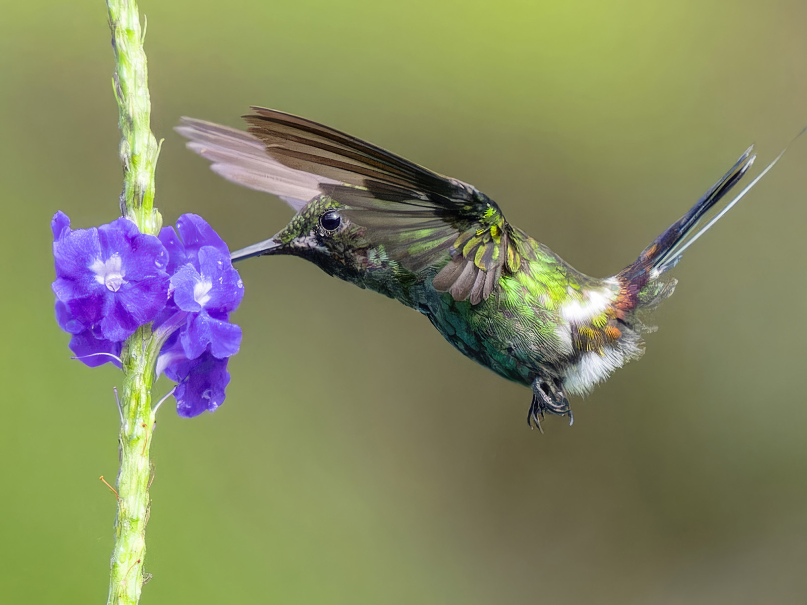 The garden regularly attracts more than 25 different hummingbird species, among them Black-throated Mango, Blue-chinned Sapphire, Purple-throated Woodstar, Rufous-tailed Hummingbird, White-vented Violetear, Ruby-topaz Hummingbird,and White-vented Plumeleteer. There are other frequent visitors, such as Saffron Finch and Bananaquit, to name but a few.