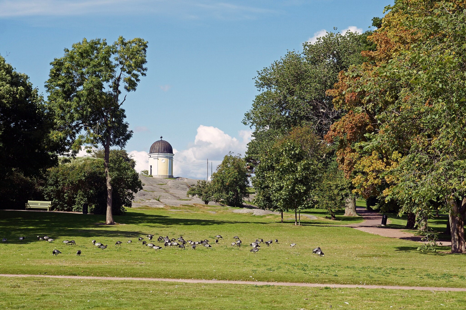 Kaivopuisto is one of the oldest and best known parks in central Helsinki. The park is a mix of old trees and large grasslands/lawns. To the south, Kaivopuisto borders the Gulf of Finland. The park is a good place for migration bird count during the spring and autumn. Among the birds you can observe are vitkindad gås, hämpling, stenskvätta, gulärla and skräntärna. In good visibility tobisgrissla can be seen on Gråhara Island (sea lighthouse).