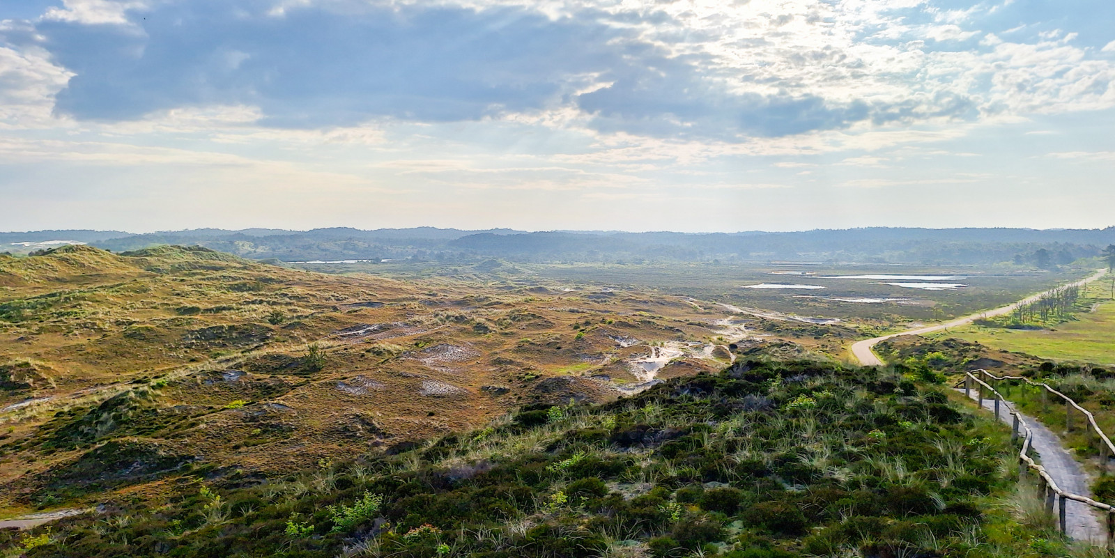 The Schoorl Dunes are located directly north of the town of Bergen and immediately west of the village of Schoorl. You can park in the parking lots on the Oorsprongweg in Schoorl (paid parking between 10 a.m. and 7 p.m.: € 2.20 per hour, a day pass costs € 13.20, 2025). Press a P in the map for directions to a parking lot. The area is also easily accessible by bicycle. And also by public transportation. From NS-station Alkmaar, bus 151 goes to Schoorl. The bus stop is marked on the map with (1). You can best explore the area by bicycle, but also on foot. The route shown on the map is 3 km to viewpoint Zwarte Blink, so there and back in total 6 km. I would allow at least 2 hours for this hike. There are numerous other trails to choose from and you can also easily make the walk longer or make it a circular walk.